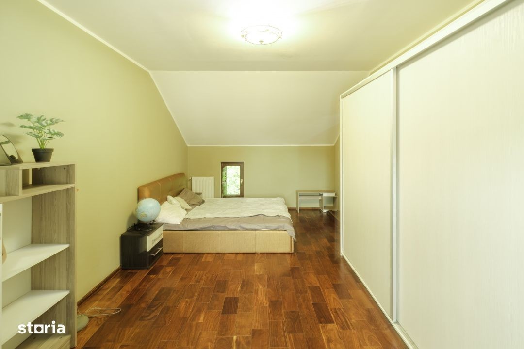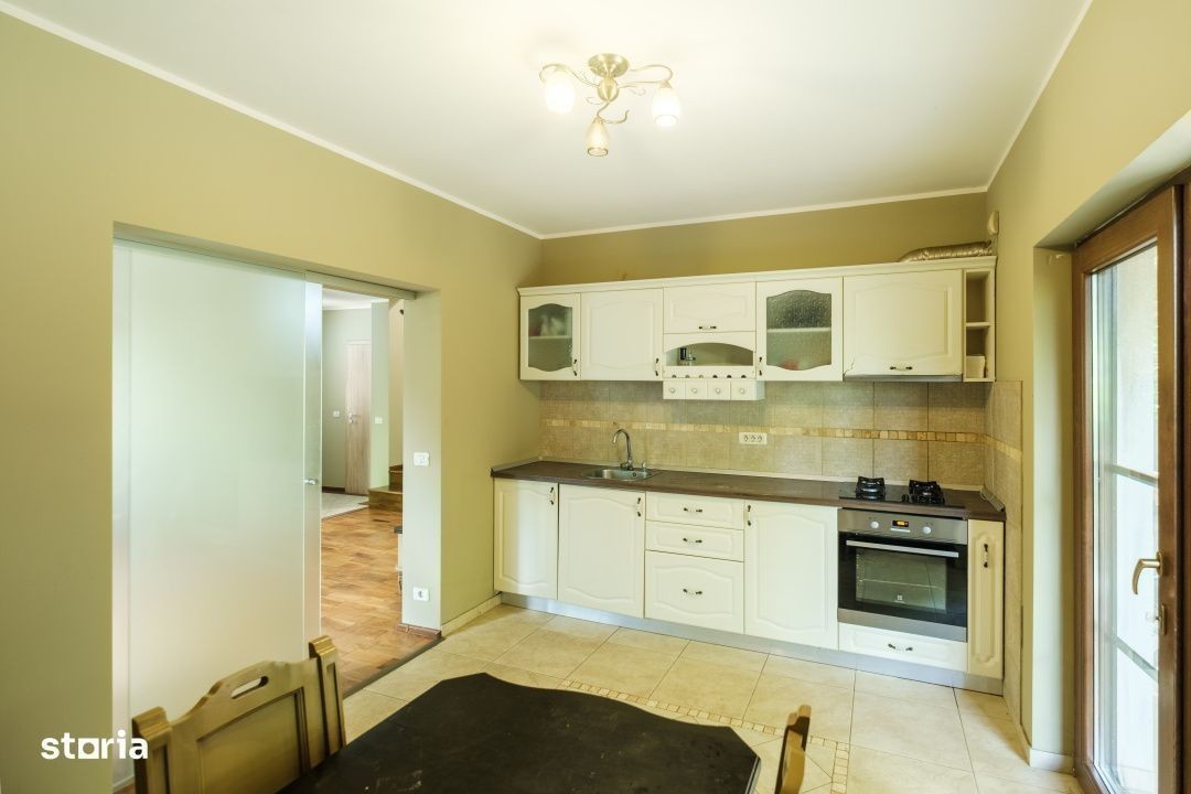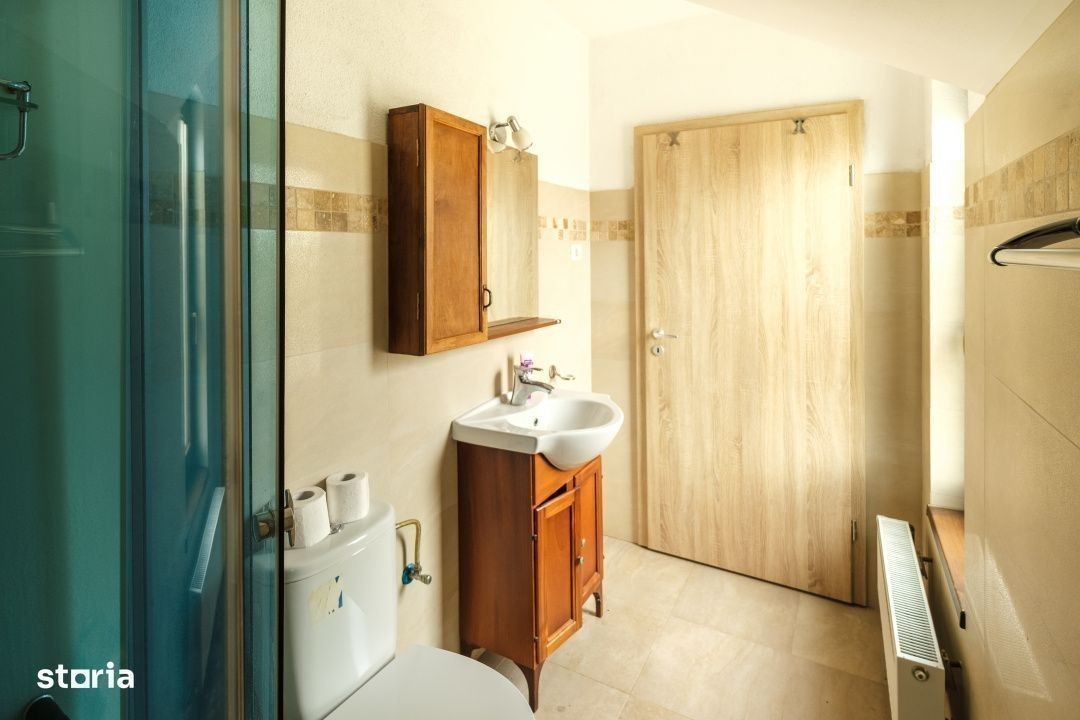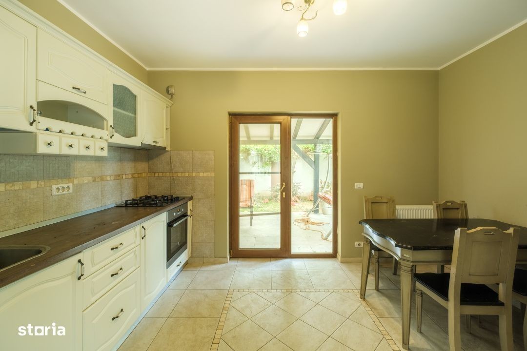 CASADOMI oferă spre vânzare - COMISION 0% Casă individuală în calcan* prin garaj, situat într-o zonă liniștită din Giroc, perfect pentru o familie care își dorește confort, spațiu și intimitate. Calcan = perete lateral al clădirii, lipit de o altă construcție, fără geamuri. Caracteristici principale: Suprafață utilă: 180 mp Teren: 349 mp Compartimentare: Parter + Mansardă înaltă Garaj închis - 2 locuri de parcare în curte Grădină cu vegetație matură care îți oferă intimitate față de vecin Parter: • Living generos, luminos •Bucătărie închisă, cu ieșire pe terasă, delimitată de living prin ușă culisantă de sticlă •Baie utilata complet •Garaj cu acces în living, respectiv în grădină Mansardă - compartimentare ideală: 3 dormitoare, dintre care: •Dormitor matrimonial cu baie proprie și ieșire pe balcon •Baie secundară (deservind celelalte două dormitoare) •Dressing spațios - perfect pentru depozitare și organizare Confort termic și climatizare: •Încălzire cu centrală termică proprie și calorifere •Două sisteme de aer condiționat, câte unul pe fiecare nivel, pentru un climat optim tot timpul anului Construcție modernă, spațiu bine gândit, curte generoasă ideală pentru relaxare sau activități în aer liber, dotată cu sistem de irigare a grădinii Sistem de supraveghere pentru siguranța ta Locație excelentă - str. Jupiter nr. 35 - într-o zonă rezidențială liniștită, aproape de facilități, magazine și mijloace de transport. Oferim posibilitatea achiziționării în rate pe perioada de 4 ani cu un avans 45% Prețul va fi cu 10% mai mare Contactează-ne pentru mai multe detalii sau o vizionare!