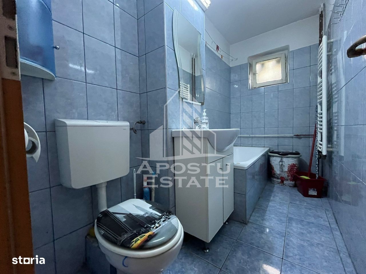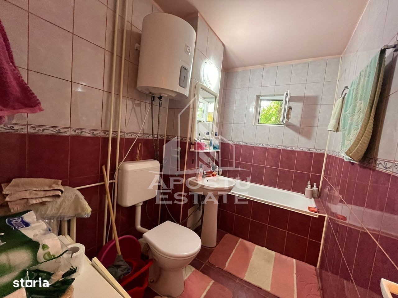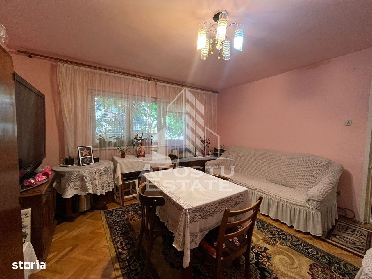 APOSTU ESTATE va ofera spre vanzare un apartament cu 3 camere si 2 bai, situat la parterul inalt al unui bloc cu 4 etaje, aflat in zona Girocului. Apartamentul se afla la cateva minute fata de statia de autobuz, market, parc, scoala/ gradinita si Spitalul Judetean. Apartamentul are o suprafata utila aproximativa de 70 mp, fiind compartimentat astfel: - hol de acces - bu catarie separata - baie prevazuta cu cada - Living - 2 dormitoare -baie de servici Confortul termic este realizat prin termoficare, posibilitate montare centrala Apartamentul se vinde mobilat si utilat, exact ca in poze. Oferim consultanta bancara prin colaboratorii nostri pentru alegerea celui mai potrivit credit. Disponibil imediat! Va asteptam cu drag la o vizionare chiar astazi!