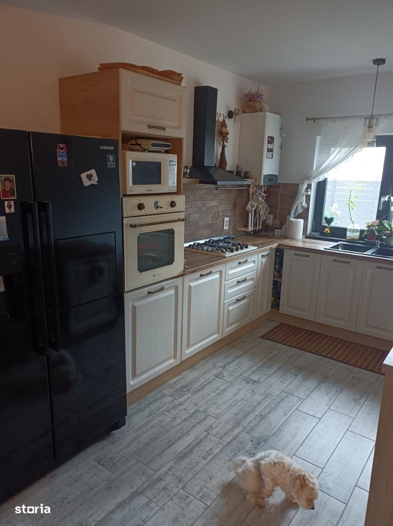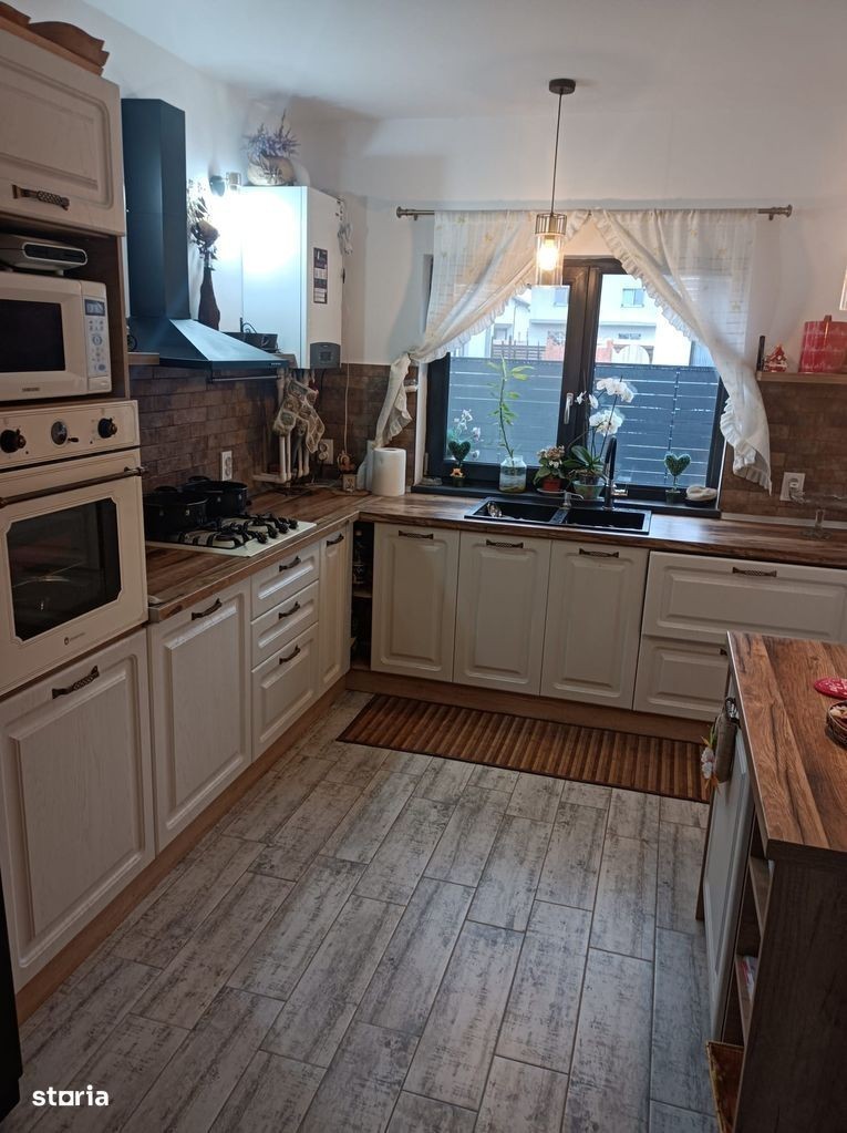 Va oferim spre vanzare casa in Tarlungeni cartier izvor, 5 km de intrarea in Brasov, formata din 3 dormitoare, 2 bai, living si bucatarie. Pod amenajat pentru depozitare pe toata suprafata. In living este amenajat un semineu traditional, pe lemne. In exterior este amenajata o terasa, un garaj si 2 magazii. Merita vazuta!