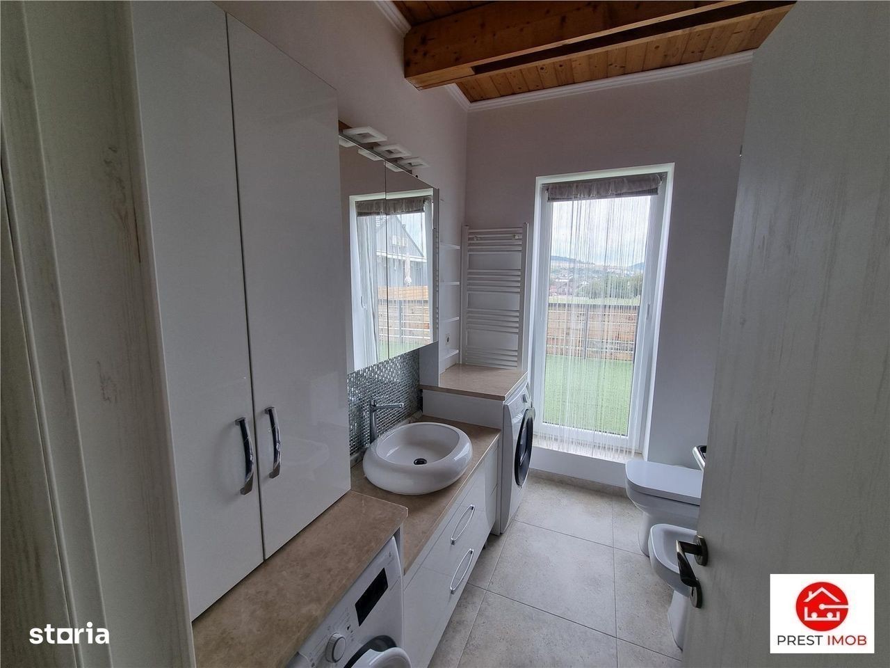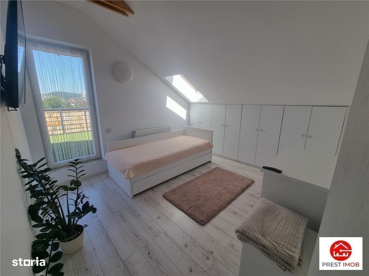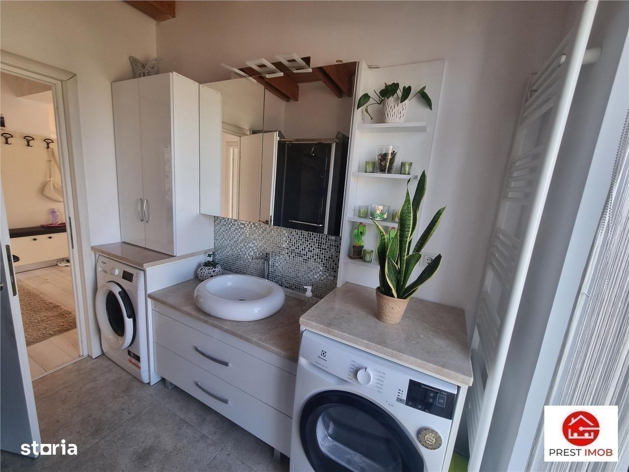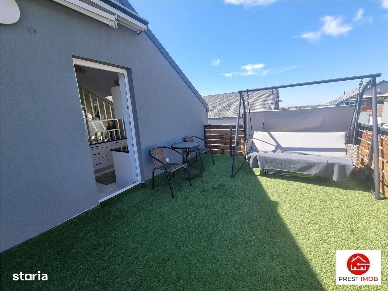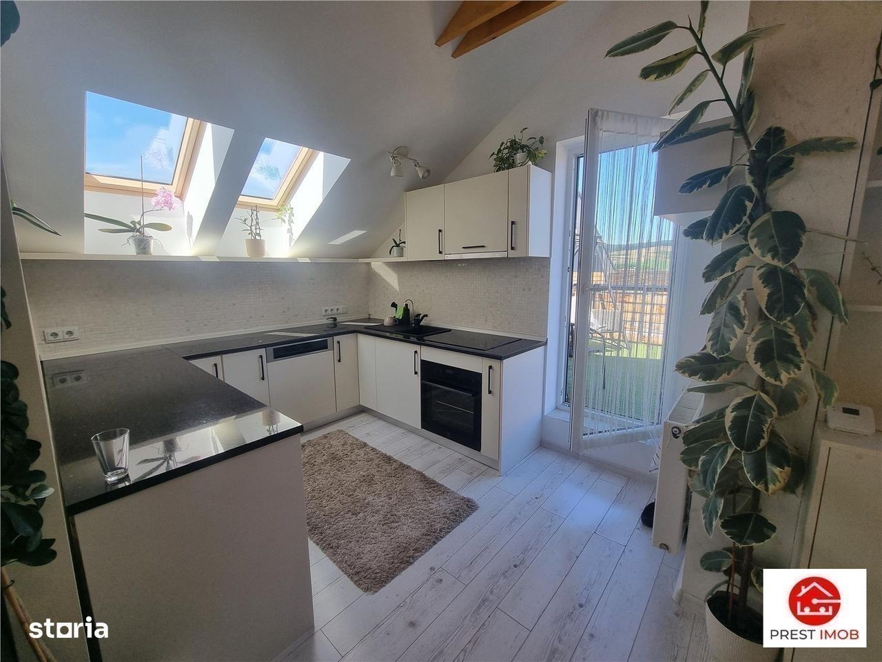 Apartament penthouse de lux, 3 camere, SC-146 mp cu 1 loc de parcare si 1 terasa de 52 mp Oferim spre vânzare un apartament penthouse exclusivist, complet mobilat si utilat, cu un design modern și finisaje de înaltă calitate, situat în Targu Mures, reper strada Vasile Sabadeanu, situat la ultimul etaj, unui bloc nou din 2 etaje, construit in 2019. Cu o suprafață construita de 146 mp si suprafata utilă de 72 mp, perfect pentru inceputul unei noi familii, cu o oaza de liniste si verdeata, departe de agitatia orasului si totusi aproape de magazine, restaurante, banci,totul necesar unui trai linistit. Compartimentare:2 dormitoare luminoase și spațioase,mansarda amenajata tip dormitor si tevile pregatite pentru posibilitatea amenajarii unei bai si in mansarda, o debara sub scarile de la mansarda, o baie modernă, finisată cu materiale premium. Un living open space generos cu bucătăria complet utilată la standarde ridicate cu mdf si blaturile din marmura si locul de luat masa open space, un balcon de 52 mp amenajat de asemenea. Parcare : Apartamentul include un loc de parcare Dotări și echipamente: Se vinde complet mobilat și utilat cu electrocasnice moderne și de înaltă performanță, pregătit să te primească imediat. Locuință deosebită pentru cei ce apreciază calitatea și stilul de viață rafinat. Preț: 139900 € putin negociabil Contact Adriana Pinca, consultant imobiliar Programează o vizionare la -