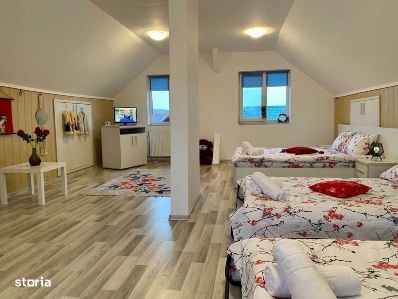 Rog fara agentii imobiliare. Filmare 1. https://youtu.be/LPQc0XctnPw?feature=shared Vand pensiunea Casa Costache, randament excelent,situata in Sanpetru, Brasov.Compusa din 7 camere,4 bai,doua bucatarii interioare,una exterioara,demisol (camera tehnica) parter,etaj mansarda.Suprafata construita aproximativ 400mp, teren 1400MP cu pomi fructiferi,gradina, toate utilitatile plus apa propie. Se vinde la cheie utilata complet.Propietatea este compusa din doua cladiri cu intrari separate.Zona aproape de centru,liniste fara trafic,mult teren. Se poate locui si pensiune,sau doua familii.Detalii puteti avea si pe booking- Casa Costache. Recomand vizionare pentru a justifica pretul cerut. Pozitia excelenta. Se accepta schimb cu apartament si diferenta dupa caz. Filmare 2. https://youtu.be/zr1vcN-bomw?feature=shared