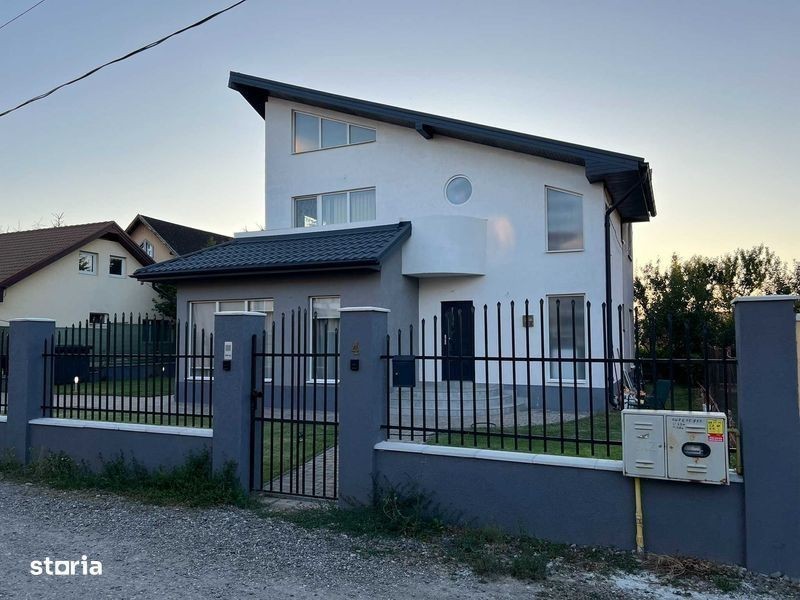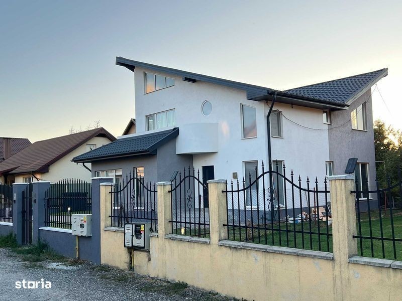 Casa moderna la cheie - 4 camere, birou, complet amenajata - zona str. Nordului, Tg. Mures Locuinta unifamiliala spatioasa si luminoasa, cu suprafata utila de 175 mp (213 mp construiti), situata intr-o zona foarte linistita, pe strada privata, la iesirea din Targu Mures spre Sangeorgiu de Mures, in zona strazii Nordului / 7 Noiembrie. IMPORTANT - AGENTII: Va rugam sunati doar daca aveti client interesat concret. Casa se vinde complet amenajata - interior, exterior, curte - fiind ideala pentru o familie care doreste sa se mute imediat, fara investitii suplimentare. Suprafata terenului: 450 mp + 50 mp cota parte drum privat Toate utilitatile sunt disponibile si bransate: apa, gaz, curent, canalizare Acces facil: 100 m de drum asfaltat Compartimentare: Parter: • Living si dining spatios (42 mp) • Bucatarie separata (14 mp) • Birou (14 mp) - poate fi folosit ca dormitor la parter • Camara + debara • Baie • Terasa (16 mp) Etaj: • 3 dormitoare (18 mp, 15 mp, 14 mp) • 2 dressing-uri (3-4 mp fiecare) • Baie • Balcon Curte complet amenajata: • Pavaj premium Semmelrock (model Appia Antica, 100 lei/mp) • Gazon + copaci ornamentali • Iluminat exterior cu stalpi programabili (control smart) • Gard frontal cu soclu si stalpi din beton + plasa metalica • Poarta auto de 6 metri, automatizare Nice, acces separat pentru 2 masini, interfon si modul smart pentru control de la distanta • Loc de parcare pentru 2 masini • Cabana din lemn pentru depozitare unelte Dotari tehnice si confort: • Panouri fotovoltaice cu baterie de 15 kW • Incalzire cu centrala termica pe gaz • Aer conditionat in living si in unul dintre dormitoare • Ferestre mari, suprafete vitrate generoase, lumina naturala excelenta Locatie excelenta: • Spitalul Judetean - 2 km • Centru Tg. Mures - 3.5 km • Lidl - 800 m • Spitalul Medex - 1.3 km • Acces pietonal pana la zona de agrement Weekend • Transport public la doar 700 m