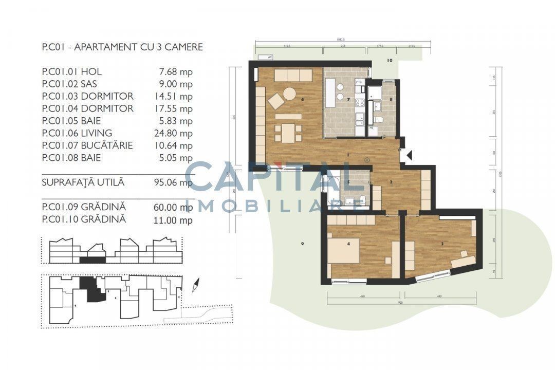 (C01 ) Apartament 3 camere, 97 mp utili, parter, gradina 71,4 mp
