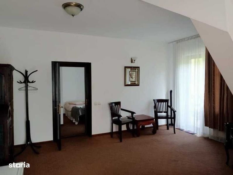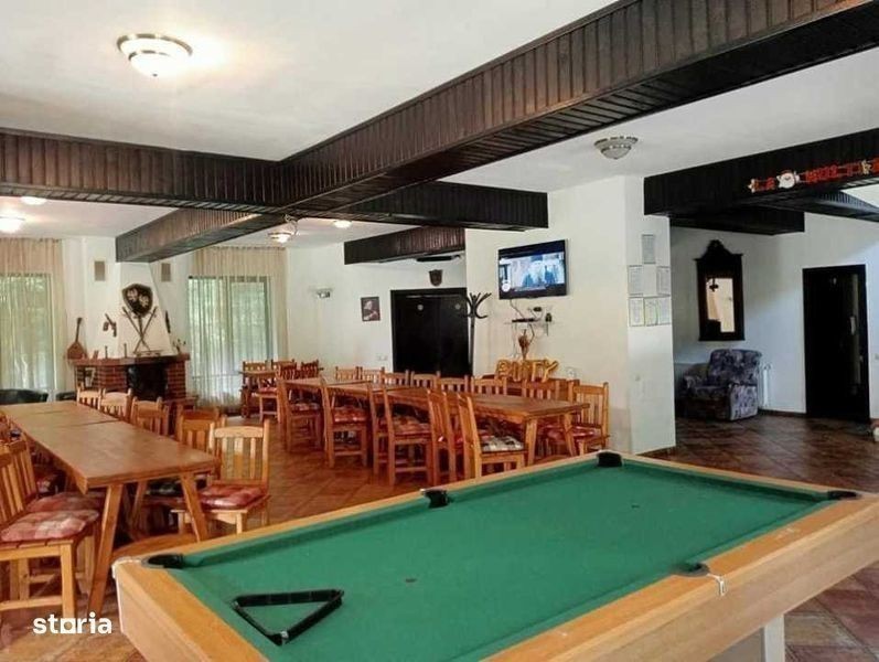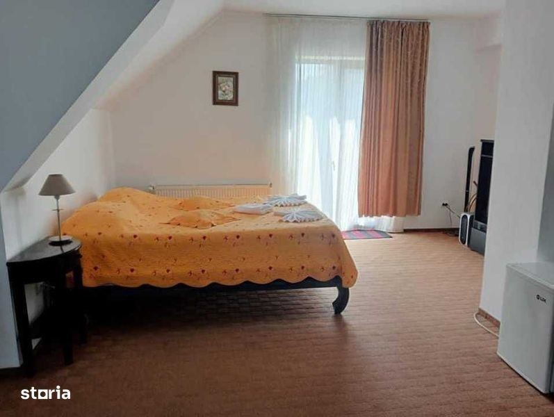 Va prezentam spre vanzare o PENSIUNE TURISTICA - Pensiunea CHEILE CETATII *** - Parter+2 Etaje+Mansarda, compusa din 14 camere - 34/40 locuri de cazare, avand o suprafata totala de 2000 mp, suprafata construita 751 mp, plus o anexa (vila) - Parter+Mansarda, cu o suprafata construita de 134 mp, compusa din 2 dormitoare, living, baie, bucatarie, camera tehnica. Pensiunea este situata intr-o poiana numita Cheisoara, la poalele Masivului Postavaru, strejuita de Muntii Bucegi, la 5 minute de Cheile Rasnoavei (coltii Cheii). Anul constructiei 2010, din BCA si caramida refractara, izolata exterior si interior, cu vata minerala si rigips. Pensiunea este compartimentata astfel: Parter - living, bucatarie, 2 grupuri sanitare. Etaj 1 - 6 camere; Eaj 2 - 5 camere; Mansarda - 3 camere. Camerele sunt mobilate cu paturi duble matrimoniale, noptiere, fotolii, masute, baie privata, uscatoare de par, tv satelit, iar apartamentul si studiourile dispun si de canapele extensibile. Majoritarea camerelor dispun de unul, doua sau trei balcoane. Bucataria este dotata si utilata cu tot necesarul, aragaz, frigider, lada frigorifica, racitor bauturi, cuptor microunde, masina de spalat vase, vesela etc. Teren de mini fotbal, volei, tenis cu gazon natural, masa de biliard, masa de ping pong. Terasa de vara este utilata cu mese, scaune si balansuar, sezlonguri, hamac, foisor, gratar. Imobilul dispune de 2 terase, 14 balcoane, 14 bai, 2 grupri sanitare. Se vinde mobilata si utilata complet. Cadastru, intabulare. Va asteptam la vizionare!