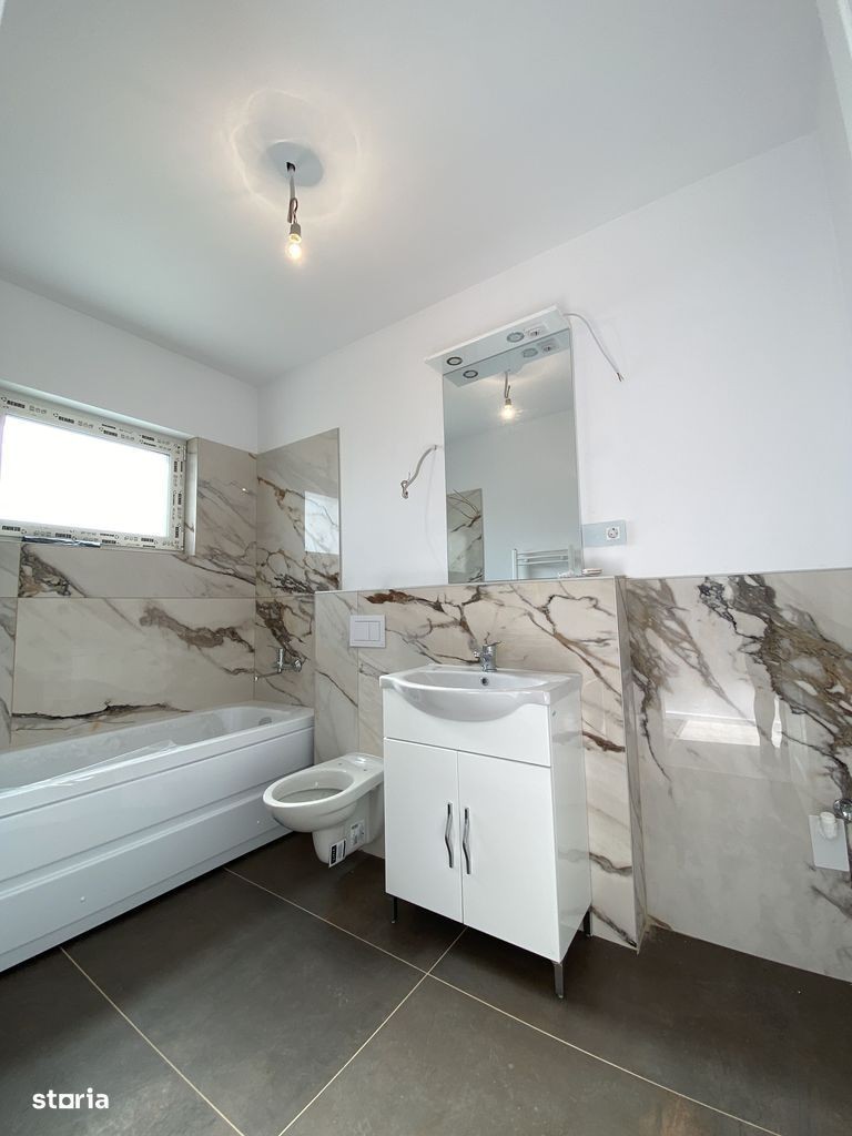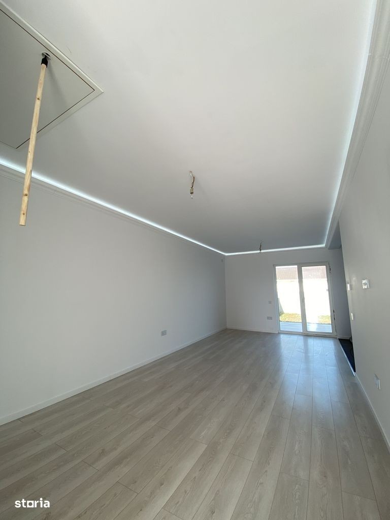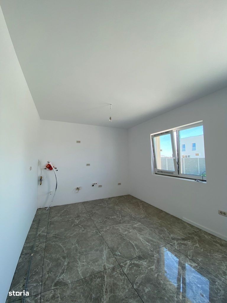 1/2 Duplex situat într-o zonă liniștită din Moșnița Noua, cu acces direct din Drumul Judetean DJ 592, la o distanta de asfalt de doar 150m. Disponibil doar apartamentul din partea stanga; Detalii principale: Suprafață utilă: 70 mp utili Teren: 330 mp Casa momentan este in stadiu la alb cu termen de predare in luna decembrie 2025; Finisajele sunt la alegerea cumparatoului pe baza unui buget alocat; Pozele din interior sunt de la un alt proiect vandut, cu titlu de prezentare. Alei din beton amprentat în curte, teren nivelat cu pamant si amenajat cu gazon; Retragerea dintre gard si casa este de 3m ceea ce permite accesul auto pe langa casa; Caracteristici tehnice: Încălzire prin pardoseală Racordat la utilități: gaz, curent, apă de la rețea, fosa septica, iluminat stradal; Pod foarte înalt, mansardabil - cu ferestre deja montate, se pot face cu usurinta 2 camere la etaj; Pentru mai multe detalii sau pentru programarea unei vizionări, vă rog sa ma contactati telefonic: