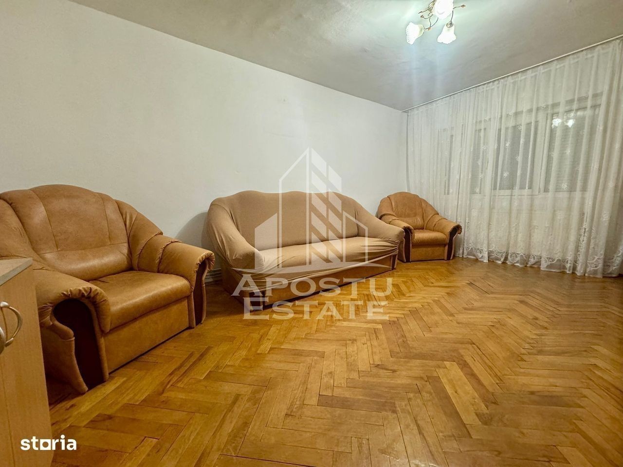 Apostu Estate va propune spre inchiriere un apartament decomandat cu 3 camere in zona Aradului. Imobilul este situat la etajul 4 intr-o zona linistita in apropiere de: mijloace de transport in comun, magazine, Universitatea Veterinara Compartimentare: - hol - dormitor cu pat matrimonial - dormitor cu canapea extensibila - living generos - bucatarie complet mobilata si utilata - baie cu geam și cada - baie cu duș - balcon Confortul termic este realizat prin intermediul centralei proprii prin calorifere și prin sistemul de aer condiționat. Disponibil imediat! Petfrindly! Vă așteptăm cu drag la o vizionare!