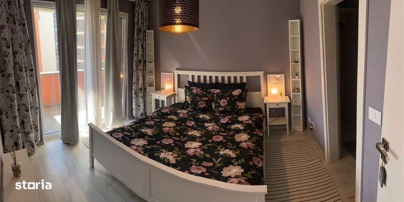 Apartamentul este situat in complexul rezidential Iris Armonia, la etajul 2. Loc de parcare privat. Apartamentul este compartimentat in hol de intrare, bucatarie cu open space, insula cu zona de servit masa si living. Dormitor cu walk-in closet. Baie cu cada. Masina de spalat vase si rufe, aparat AC. 2 balcoane, unul cu iesire atat din zona de bucatarie, cat si din living, iar celalalt cu iesire din dormitor. Se percepe garantie in cuantumul unei rate lunare. Nu se accepta animale de companie. Rog agentiile imobiliare sa nu ma contacteze in vederea preluarii anuntului. Accept vizionarea apartamentului alaturi de potentiali chiriasi.