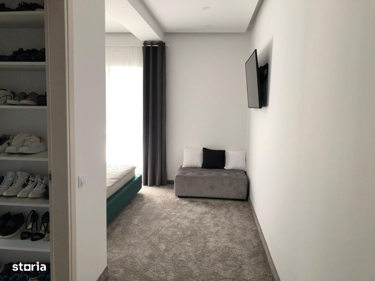 NORTH HOMES BUCHAREST ARE PLACEREA DE A VA PREZENTA : Apartament de Lux cu 3 Camere - Ima Residence, Pipera/Iancu Nicolae Locație Premium: Str. Matei Basarab, acces din Bd. Erou Iancu Nicolae sau Bd. Pipera Lângă Pădurea Băneasa, într-o zonă verde, liniștită și exclusivistă Detalii Proprietate: Nr. camere: 3 (decomandat) Nr. băi: 2 Suprafață utilă: 102 mp Terasa: 45 mp - amenajată pentru relaxare Etaj: Parter înalt Tip imobil: Bloc de apartamente (P+3E) An construcție: 2020 Loc de parcare subteran - inclus în preț Dotări și Finisaje Premium: Mobilat complet - piese de la Mobexpert, Rovere, Ixina, Divan&Sofa Utilat complet: TV, aer condiționat, mașină de spălat rufe & vase, frigider Plită, cuptor, vitrină frigorifică pentru vinuri Încălzire prin pardoseală - cu centrală termică proprie (32 kW + boiler încorporat) Tâmplărie exterioară cu geam tripan - izolație fonică și termică excelentă Sistem smart de control al temperaturii - pentru fiecare cameră Video interfon și supraveghere video 24/7 - siguranță garantată Structură pe cadre de beton - compartimentări din cărămidă Porotherm (25 cm) Izolație exterioară premium - vată bazaltică și ardezie flexibilă Avantaje și Vecinătăți: Acces rapid la Bd. Pipera și Iancu Nicolae Grădinițe și școli internaționale în apropiere: British School, Mark Twain International, Olga Gudyn International Centre comerciale și facilități: Jolie Ville, World Class Atlantis, restaurante, clădiri de birouri