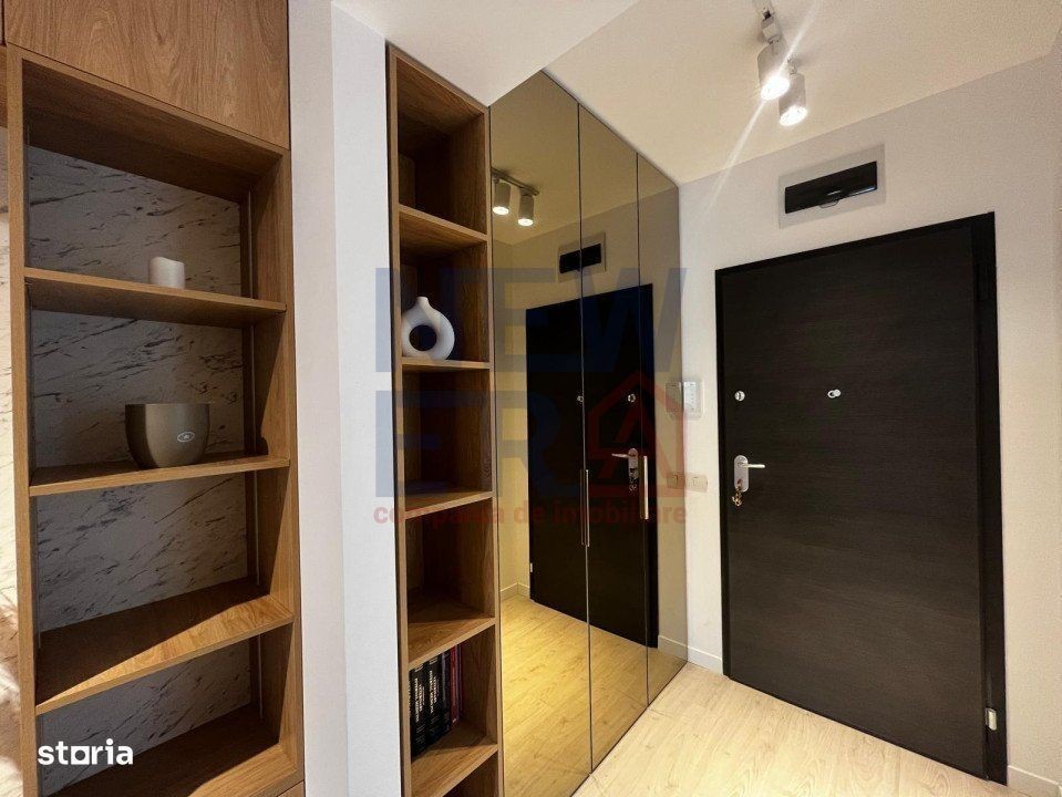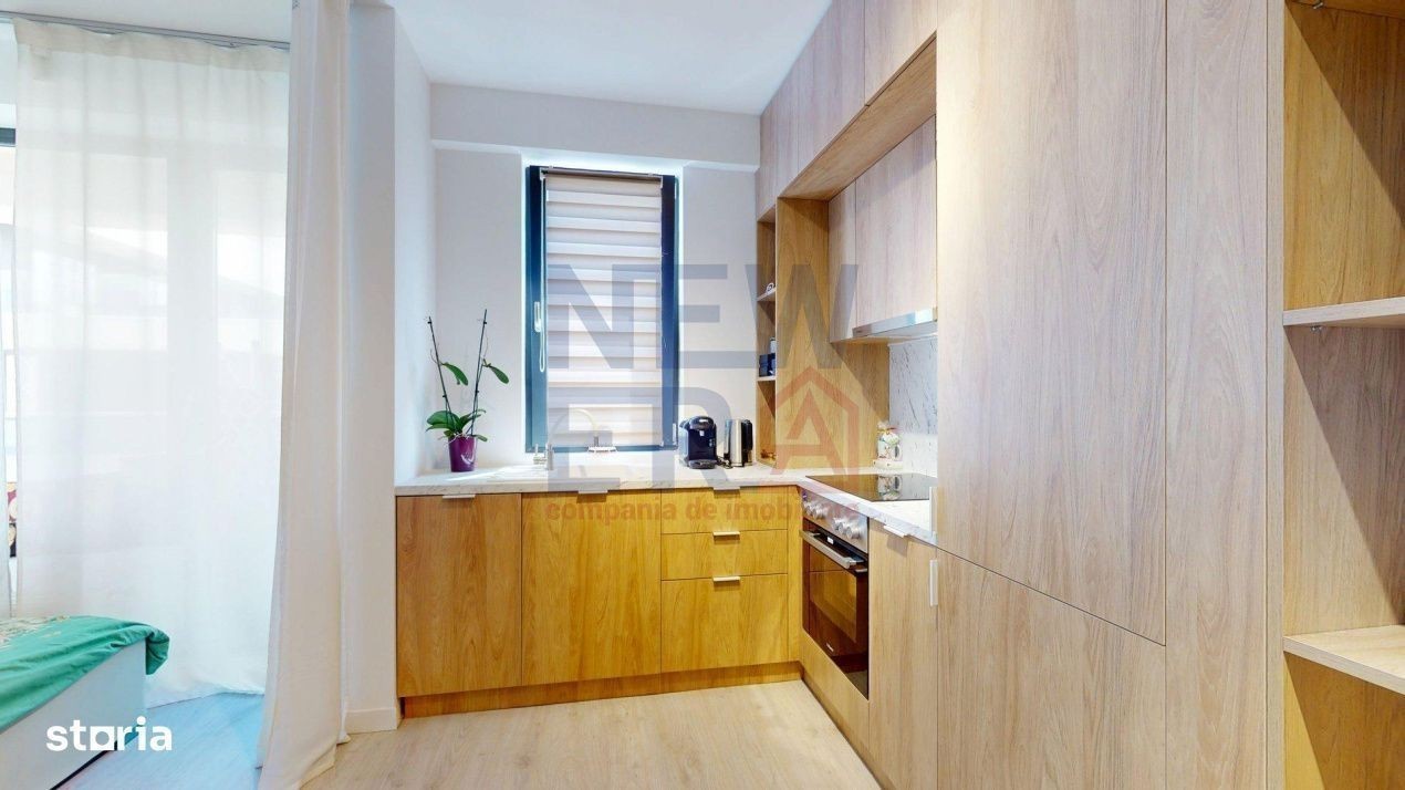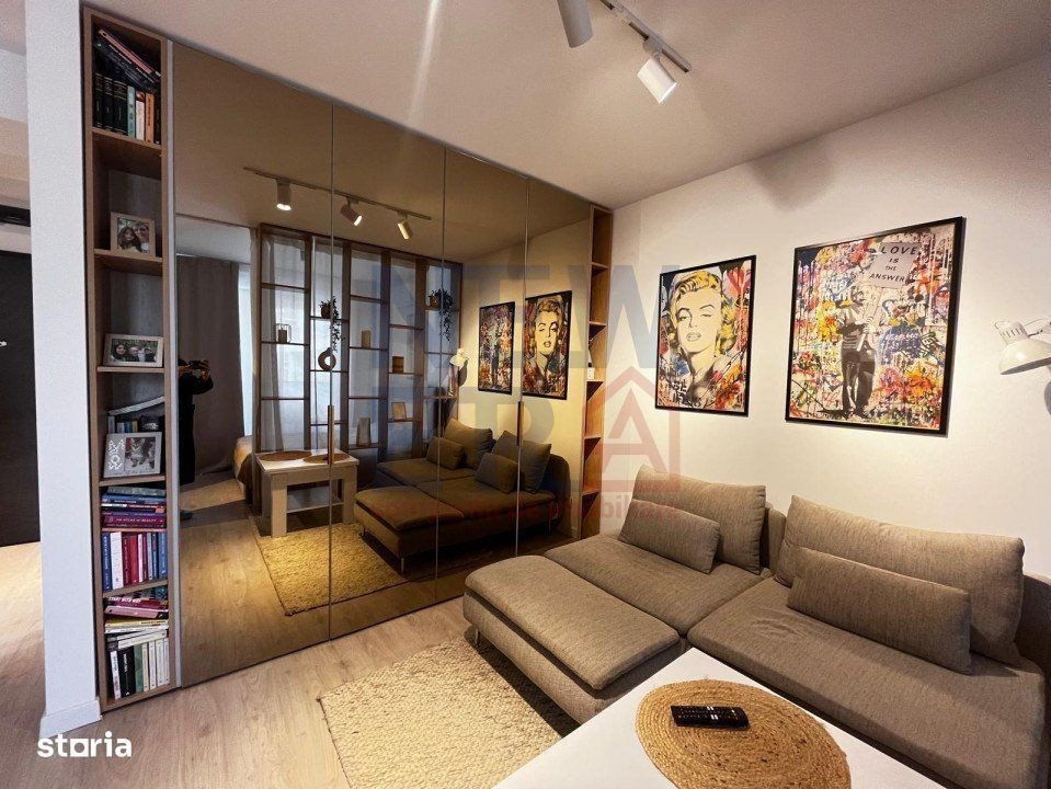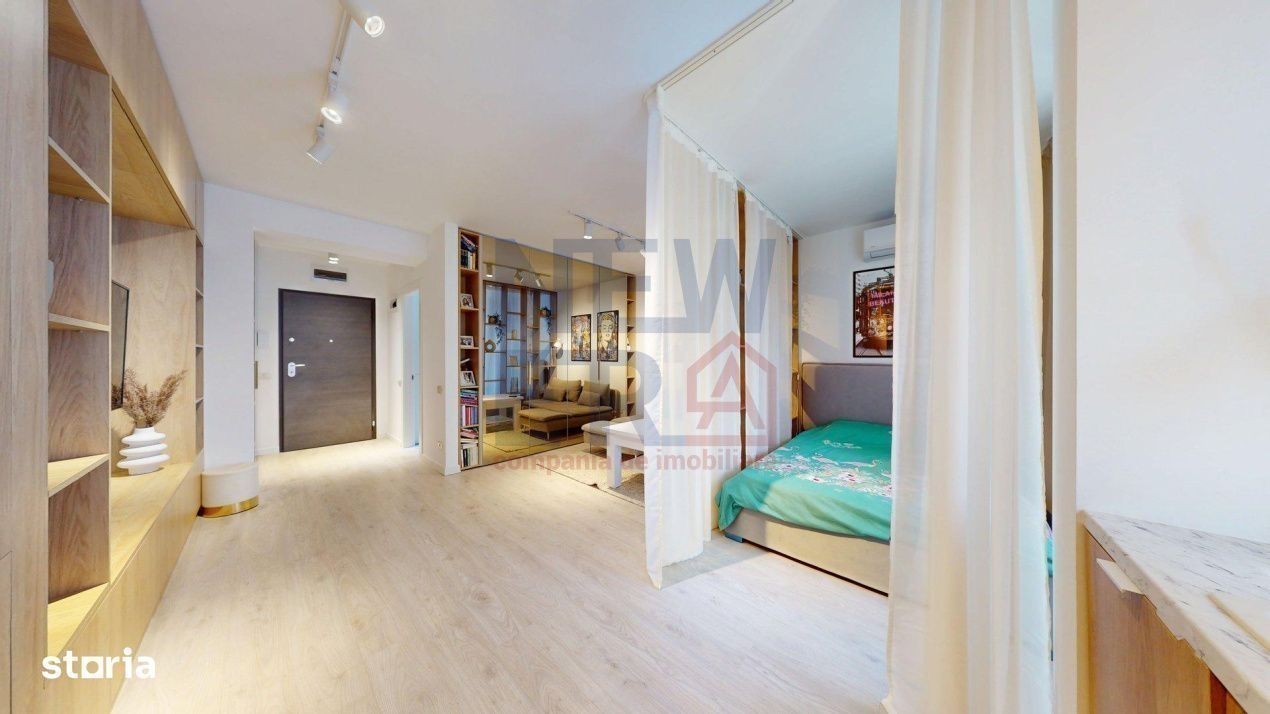 Va propun spre vanzare un studio premium, în ansamblul rezidențial Residence 5 Pipera, construit in 2023 și finalizat în 2024. PRET PROPRIETATE 100000 EURO +TVA, LOC DE PARCARE 13 000 EURO+ TVA Proprietatea se afla la etajul 4 si a beneficiat de un proiect de design al arhitectului Andrei Chiritoiu. Este complet utilat si mobilat cu mobilier facut pe comanda si este disponibil, fie pentru mutare, fie pentru investitie, avand in prezent, in derulare un contract de inchiriere. Dotari: aer conditionat, mașina spălat rufe, mașina de spalat vase, cuptor,plită, televizor smart LG 55 inch, spatii de depozitare generoase, dressing in zona de living, dressing la intrarea in studio, patul are de asemenea spatiu depozitare, cat si biblioteca. Balconul a fost amenajat ca spatiu de recreere, cu mobilier de exterior. TUR VIRTUAL ATASAT IN LISTARE Locul de parcare destinat proprietatii este la pretul de 13 000 euro.