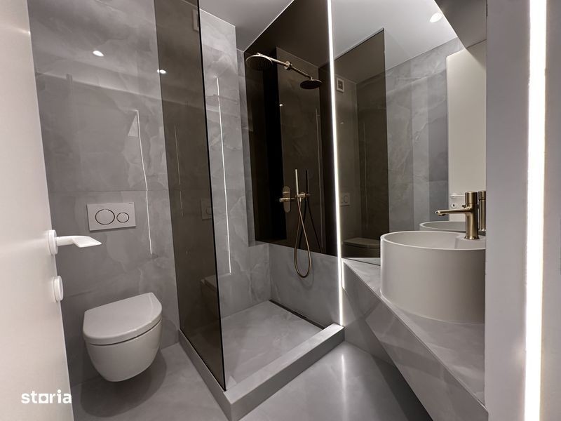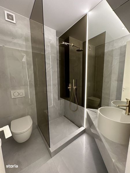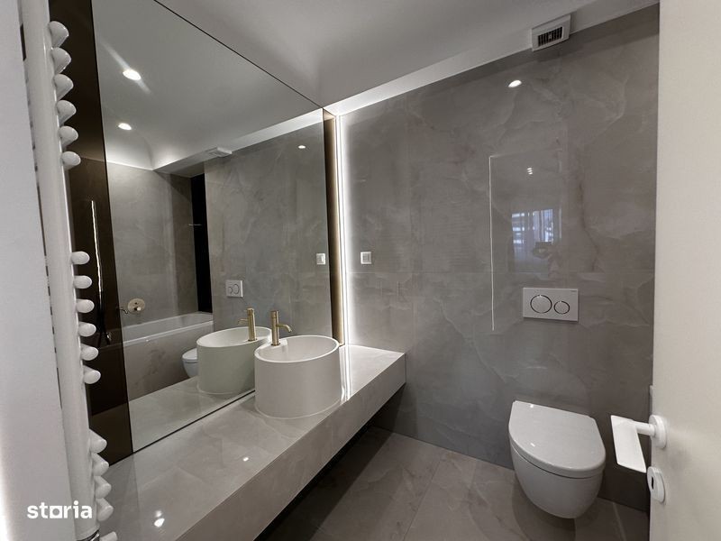 PROPIETAR! Apartament 3 camere, MOBILAT SI UTILAT (mobila mdf) situat vis-a-vis de Porche Nord Pipera in complexul rezidential premium Cortina North. Apartamentul este pe Faza 3, etaj 1 si este finalizat! Pretul afisat este cu TVA Apartamentul se afla la etajul 1, este decomandat, si are o suprafata totala de 96.45 mp construiti si de 76.7 mp utili. Beneficiaza de 2 grupuri sanitare (unul cu cada, iar celalalt cu cabina de dus), si un balcon foarte spatios (9.8 mp). Suprafata UTILA de 76.7 mp a apartamentului este distribuita astfel: - Living + Bucatarie: 23,5 mp - Dormitor 1: 12,4 mp - Dormitor 2: 16,8 mp - Baie 1: 4,5 mp - Baie 2: 3,3 mp - Hol: 6,4 mp - Balcon: 9,8 mp Ansamblul Cortina North se afla in vecinatatea a doua mari supermarketuri: Lidl si Kaufland. De asemenea imobilul se situeaza in apropiere de statii STB, de statiile de metrou Aurel Vlaicu (Aviatiei) si Pipera (Dimitrie Pompei), in proximitatea viitorului Spital Metropolitan, precum si in apropiere de scoli, gradinite, si alte centre comerciale. In plus, ansamblul Cortina North beneficiaza de amplasarea unui sens giratoriu conexat accesului in ansamblu ce asigura circulatia facila din ambele directii de circulatie ale Bulevardului Pipera. Complexul rezidential Cortina North ofera un stil de viata premium, activ, sanatos si securizat, cu o paleta larga de facilitati unice in zona: - centru Fitness si Wellness cu bazin de inot - peste 1,5 km pista de alergare - peste 10.000 mp de spatii verzi amenajate conform unui plan peisagistic integrat arhitecturii - galerii comerciale dedicate - parcari private subterane si supraterane - acces controlat - fatada ventilata, etc. FINISAJE PREMIUM: - fatada ventilata SwissPearl - tamplarie Schuco cu geam tripan termoizolant, - ceramica Porcelanosa - obiecte sanitare Daniel Rubinetterie - parchet calitate superioara - usi de intrare securizate Pinum - usi interioare Filomuro - sisteme de iluminat led incastrate si la vedere, scafe, contur luminos ambiental. - tavan barisol DOTARI: - centrala termica Ariston in condensatie, cu gaz; - aer conditionat in fiecare camera, tip multisplit - LG; - videointerfon; - utilitati "ready to use” (racorduri individuale la gaze, curent electric, apa curenta, internet); - aparatura electrica si cablaje pregatite pentru conexiunea TV si internet.