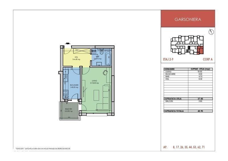 Va propunem spre achizitie o garsoniera decomandata, cu o suprafata total utila de 41 mp, disponibila in ansamblul Apollo Residence, format din 6 imobile de locuinte colective si o parcare supraetajata de dimenisiuni mari, amplasat langa statia de metrou Berceni, chiar la piciorul Pasarelei pietonale, in Orasul Popesti Leordeni, Ilfov. La parterul imobilelor se regasesc spatii comerciale, in care se vor amenaja magazine comerciale de proximitate cu diverse activitati economice (farmacii, restaurante, hypermarketuri, sala de fitness, salon de infrumusetare). Garsoniera este disponibila la etajul 1/9 al imobilului. Blocurile sunt dotate cu panouri fotovoltaice pentru aport energie electrica pentru partile comune si 2 lifturi marca Schindler care ajung pana in subsol. Proprietatea dispune de o compartimentare moderna, cu spatii mari vitrate, dupa cum urmeaza: living 18.00 mp, bucatarie inchisa de 8.00 mp, hol amplu 6.30 mp ce permite amenajarea unui spatiu de depozitare, baie de 4.70 mp si un balcon de 3.90 mp. Accesul catre imobil este unul facil, direct din Soseaua Oltenitei prin Drumul Fermei, cat si din Soseaua Berceni prin strada Popesti Vest. Pret apartament : 73.500 Euro + TVA. Posibilitate achizitie loc de parcare subteran la pretul de 13.000 Euro + TVA