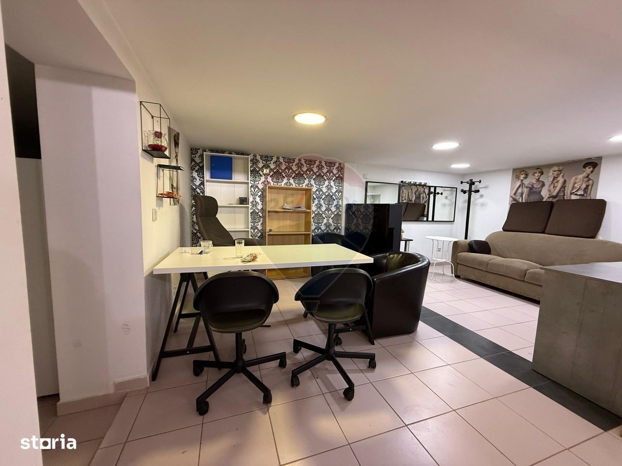 Ne face placere sa va prezentam un spatiu comercial cochet de inchiriat in zona Moinesti. Spatiul are o suprafata de 90 mp utili si se afla la demisolului unei vile de 2 et, avand intrare proprie exclusiva. Dispune de o vitrina de 5m, are 2 intrari, grup sanitar si este compartimentat in 3 incaperi (50mp/25mp/15mp). In fata vitrinei dispune de o terasa proprie amenajata ca spatiu de relaxare de aprox 35mp Intaltime interioara - 2 metri Spatiul are aer condiționat, este placat cu gresie, dispune de geamuri termopan, instalatii electrice si sanitare noi, proaspat zugravit. Iluminat interior LED pe zone independente. De asemenea, are si curent 380. Este ideal pentru amenajarea unui birou, sala de curs, salon infrumusetare sau orice alt tip de business ce se preteaza pe aceste dimensiuni. In cazul inchirierii pentru sala de curs, se asigura la cerere si mobilierul necesar (mese, scaune, lampi mese, etc). Proprietatea se inchiriaza pe minim 1 an de zile. Se percepe o luna de inchiriere + o luna de garantie la inchirierea spatiului. Comision standard. Daca v-am starnit interesul cu aceasta proprietate, nu ezitati sa ne contactati pentru a stabili o vizionare!