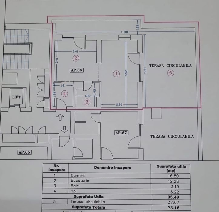 Vand studio penthouse situat in cadrul Ansamblului Rezidential Ten Blocks cu deschidere la Bd. Preciziei nr. 6M si Bdul Iuliu Maniu 109, la 2 minute de statia de metrou Pacii. Apartamentul face parte dintr-un ansamblu de 10 blocuri cu regim de inaltime P+8, situat la etajul 8, fiind considerat un imobil de lux. Suprafata utila este de 35,5 mp, distributia camerelor fiind conform releveului atasat, la care se adauga teresa de 37,67 mp avand un total de 73,16 mp. Studioul se vinde mobilat si utilat complet, inclusiv aparat de aer conditionat si este ideal pentru investitie oferind un randament de min. 6%. Ansamblul dispune de spatii verzi, camere video, acces securizat, paza permanenta la intrare, acesta fiind foarte bine organizat si intretinut. Optional se poate vinde si loc de parcare suprateran la pretul de 10.000 eur. Se poate incheia direct contract de vanzare-cumparare, fara sa existe ipoteci/credite notate asupra imobilului. Telefon contact: