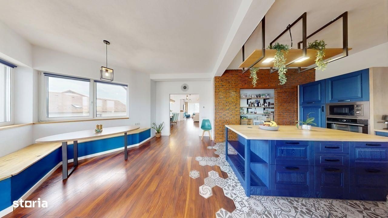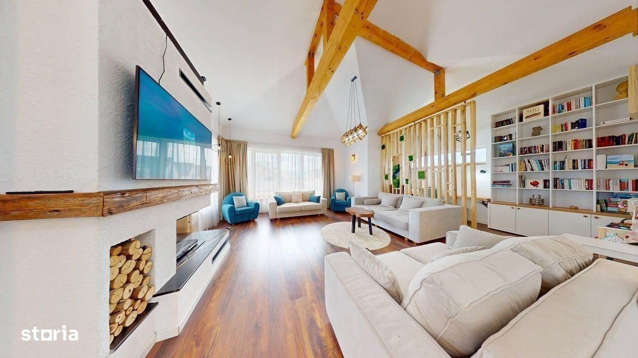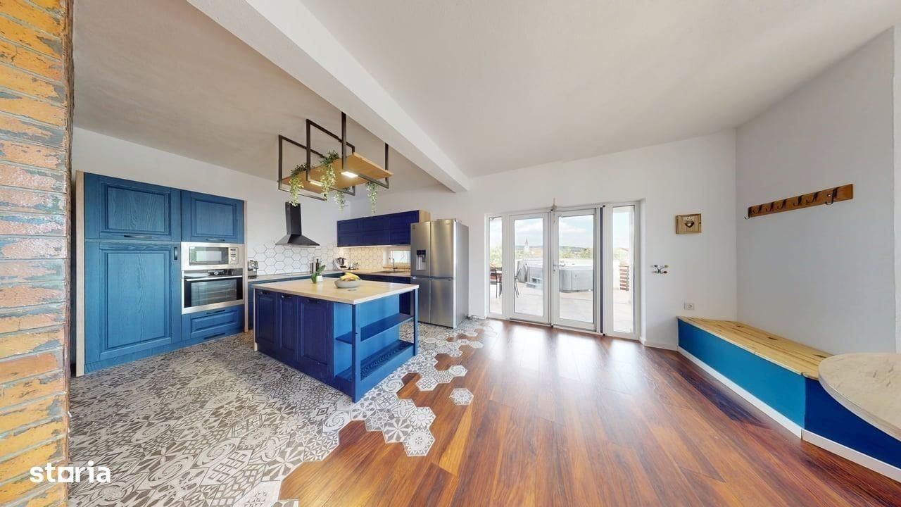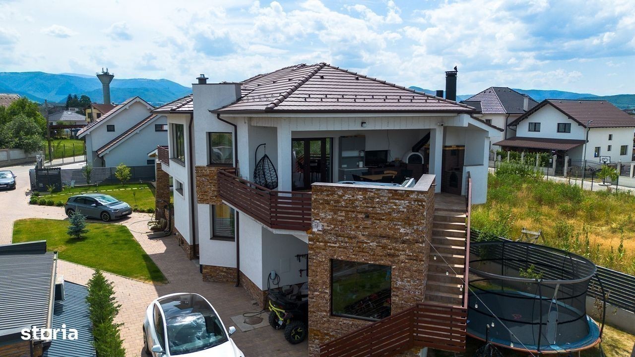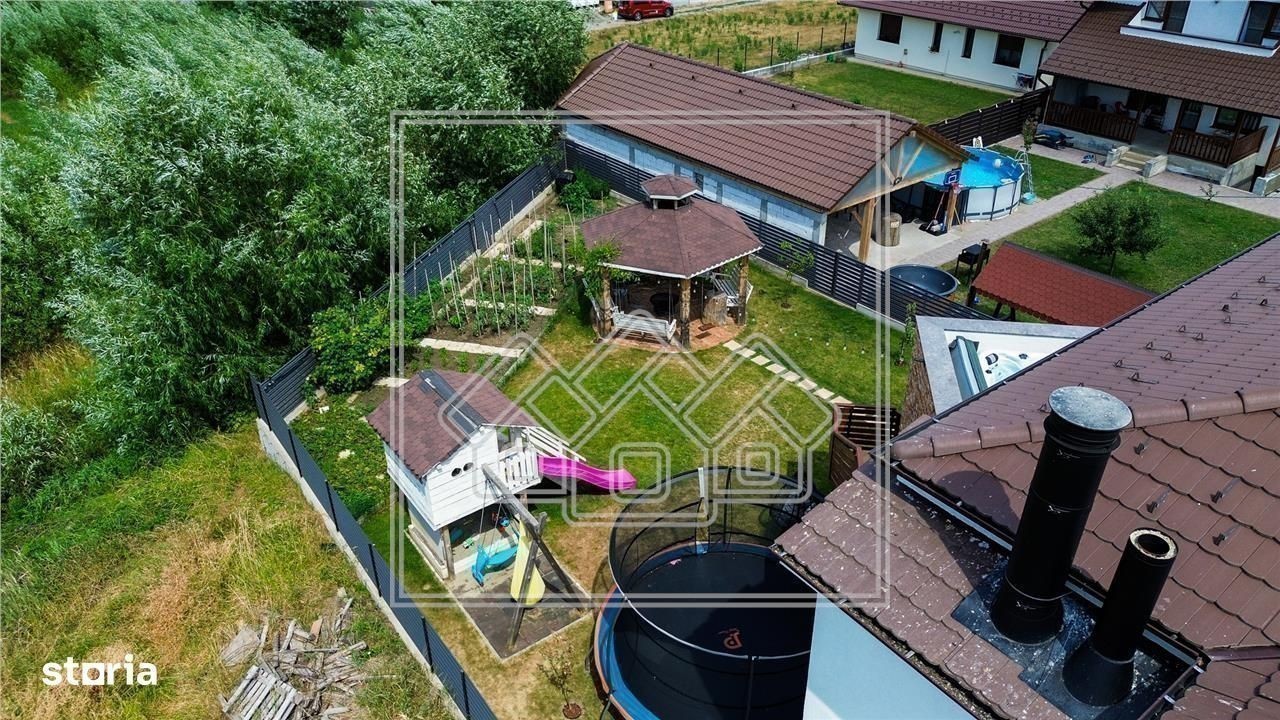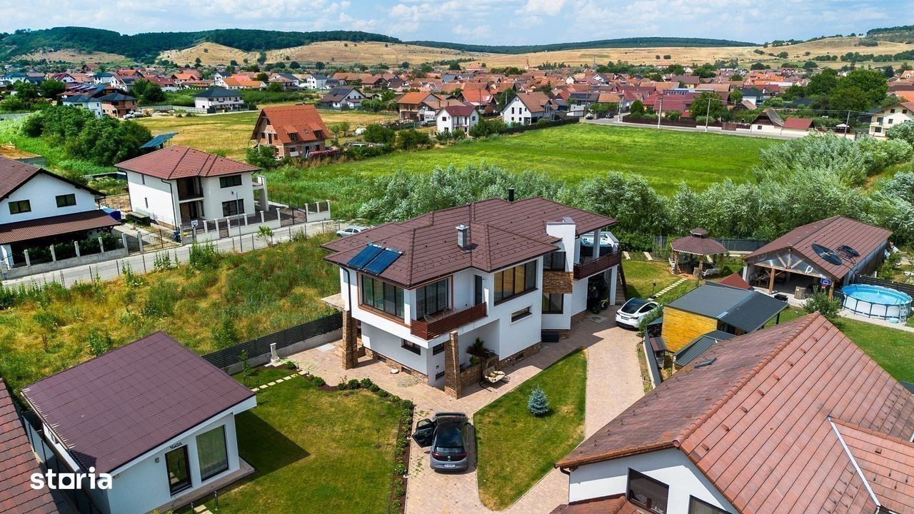 Casa individuala de lux de vanzare - Cristian, Sibiu - 7 camere, 278 mp utili, teren 1084 mp De vanzare casa individuala spatioasa si complet utilata, situata in localitatea Cristian - la doar 12 km de Sibiu si 6 minute de Zona Industriala Vest. Caracteristici principale: - Suprafata utila: 278 mp - Teren total: 1084 mp (700 mp curte libera) - 7 camere, 4 bai, bucatarie, terasa, balcon - Constructie 2020 - S+P+1E - Casa complet mobilata si utilata cu finisaje de lux Dotari speciale: - Sauna, Jacuzzi, semineu Hoxter - Sala de sport si spatiu yoga (45 mp, cu baie proprie) - Man Cave (33 mp) - zona dedicata relaxarii si socializarii - Terasa 45 mp cu gratar complet echipat, cuptor, plita - Filigorie cu gratar tip fire-pit, loc de joaca pentru copii, gradina de legume Tehnic si confort: - Incalzire in pardoseala (toata casa + bar subsol) - Pompa de caldura + panouri solare - Aer conditionat, geamuri tripan 7 camere, izolatie exterioara 14 cm - Tablou electric tactil, usi Porta Doors Alte beneficii: - Acces auto si pietonal amenajat - Garaj + locuri de parcare in curte - Acces asfaltat, zona de case elegante Casa este intabulata si disponibila imediat. Se accepta si credit ipotecar. Pretul este acelasi, indiferent de modalitatea de plata. ID intern: 22327 Pentru mai multe detalii si vizionare, suna acum.