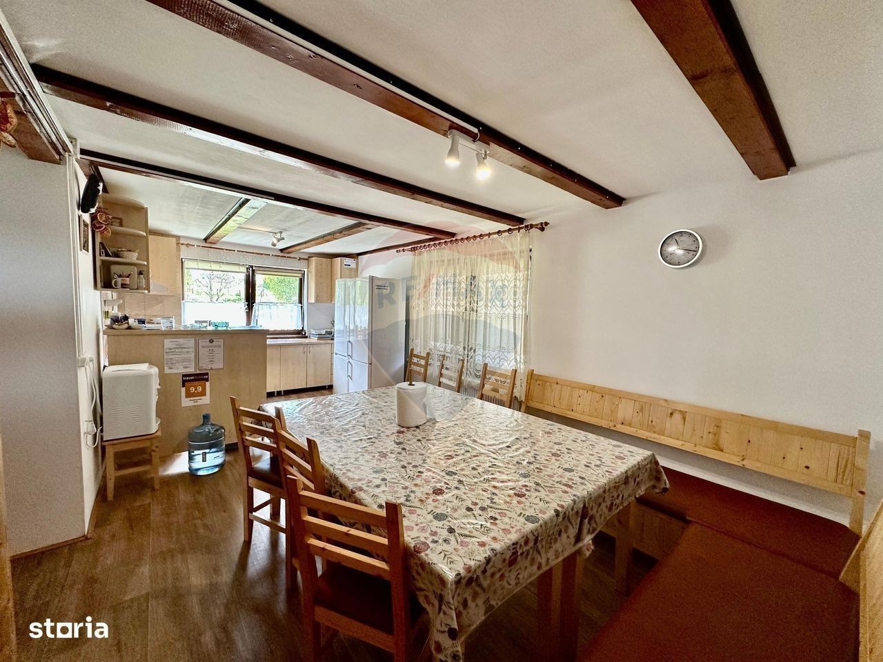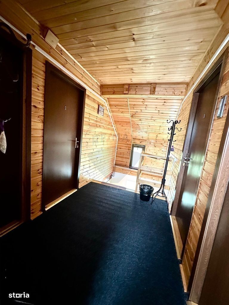 Vă propunem spre vânzare o pensiune/cabană situată în Beliș, în satul Bălcești, la ieșire din localitate spre Doda Pilii, la aproximativ 5 km de accesul către plaja lacului Beliș. Proprietatea oferă un cadru natural deosebit, cu multă verdeață, liniște și acces facil la lac. Imobilul este amplasat pe un teren de 1.150 mp, care include două corpuri de clădire, o curte amenajată cu plante decorative, grătar, foișor și locuri de parcare. Compartimentare: - 4 camere (cu 2 și 3 locuri de cazare) - 3 băi - Living - Bucătărie - Loc de luat masa - Spațiu tehnic - Cameră de depozitare - Zonă de joacă/relaxare Sistem de încălzire: centrală pe lemne și șemineu funcțional în living. Apa caldă este asigurată de un boiler de 200 litri. Utilități: apă, curent electric, TV prin cablu, micro stație de epurare. Proprietatea este ideală atât pentru activități turistice, cât și ca locuință de vacanță. Pentru informații suplimentare sau programarea unei vizionări, nu ezitați să ne contactați.