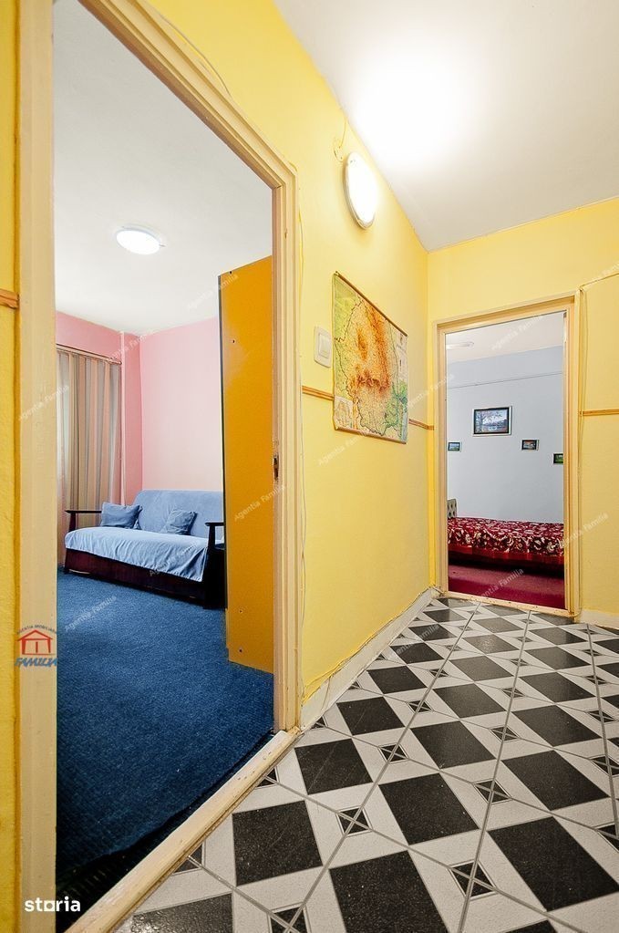 Apartament spatios, trei camere decomandate, etaj 4 din 5, IC Frimu Agentia Imobiliara Familia va propune spre cumparare, in exclusivitate, un apartament spatios cu 3 camere decomandate, doua bai (baie cu fereastra de aerisire si grup sanitar de serviciu) si doua balcoane, unul cu iesire din bucatarie si sufragerie si un al doilea balcon cu iesire dintr-unul dintre dormitoare, ambele inchise cu tamplarie PVC cu geam termopan.