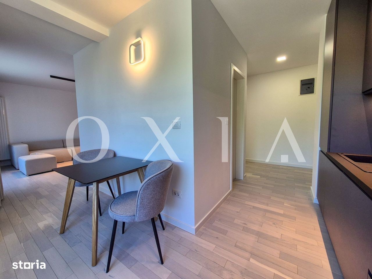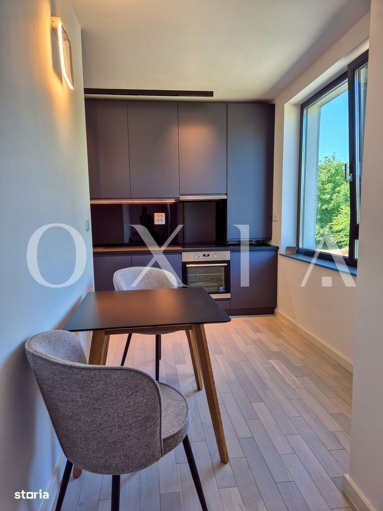 OXIA va prezinta o proprietate aflata la prima inchiriere: apartament cu 2 camere situat in Dumbravita, acces de pe strada Ferventia. Imobilul este construit in 2025, proprietatea se afla la etajul 1/3, avand o suprafata utila de 58 mp si o terasa de 4 mp. Compartimentare: * Hol acces * Bucatarie deschisa spre un living generos * Spatiu depozitare * Dormitor * Baie dotata cu cabina de dus si geam * Terasa cu iesire din bucatarie Detalii si finisaje: Apartamentul pune accent pe calitate, avand amenajari premium: gresie/faianta de top, ferestre PVC cu geam termopan, usi interioare din MDF, usa de intrare metalica, vopsea lavabila, etc. Confortul termic este garantat de centrala proprie pe gaz incalzire prin calorifere si de sistemul performant de climatizare. Beneficiati de un loc propriu de parcare suprateran. Proprietatea se inchiriaza complet mobilata si utilata. Pret: 600 EURO + TVA + garantie + comision agentie Pentru a programa o vizionare sau pentru informatii suplimentare, sunati la:
