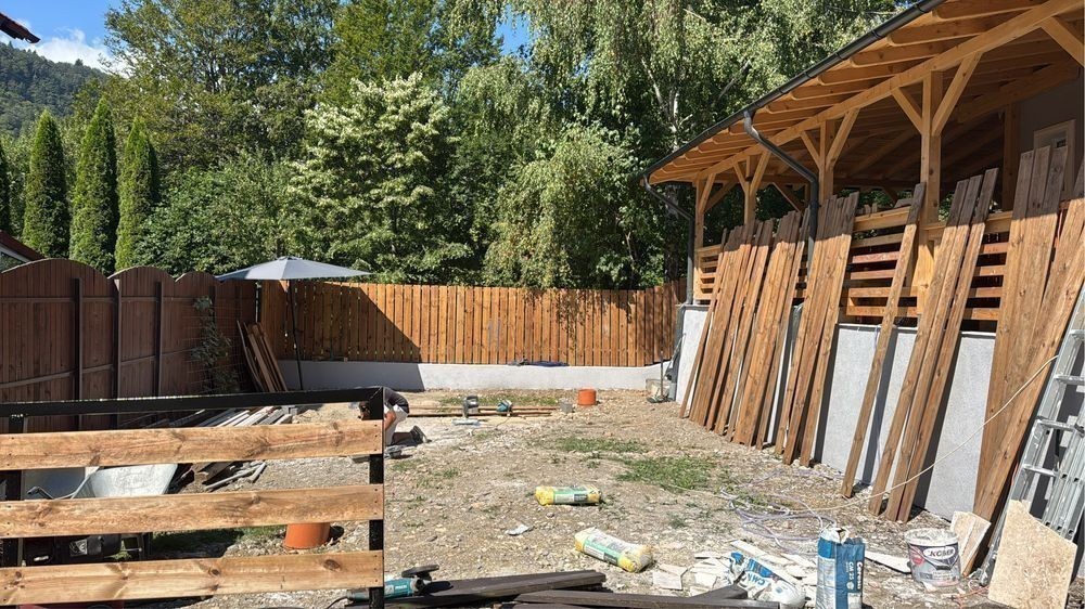 Vand casa oras Azuga, Str.30 Decemrie, 6A, ca si pozitionare, este la 3 minute de mers pe jos pana la partie, pana in bariere se face dreapta si are un teren de 408 mp cu forma dreptungiulara 23*17,5, cu o suprafata construita la sol fara tersa de 106 mp, total demisol+parter+pod+terasa aproximativ 280mp. Casa a fost renovata total cu lux de amanunte: -geam termopan 7 camere, 4 anotimpuri, SALAMANDER, gri antracit -tabla Bilka, gri antracit grosime 0,5, 15 ani garantie; -terasa 40 mp, turnata cu beton de statie cu pompa, scose cabluri pentru tv, travertin antichizat de 12mm, lipit numai cu Ceresit CM25; -Iizolatie exterioara cu polistiren EPS80/100, iar la glafuri pus polistiren extrudat; -ancadramente exterioare de calitate premium de la NMC; -sageac batut cu labmriu clasa AB DE 12,5 mm; -tavanul terasei batut cu lambriu de 20 mm calitatea1, direct producator Bertea; -pavaj curte si borduri, Petra Pavaje; -lumini exteriore si lampi exteriore de la Lumilux; -centrala termica 28kw; -incalzire prin pardoseala toata casa pusa pe placa nu nuturi, sub placa cu nuturi a mai fost pus polistiren extrudat, iar peste placa cu nuturi a fost turnata sapa elicopteizata, cu pompa; -instalatie electrica refacuta total, pefiecare etaj trasainstalatie noua; -instalatie sanitara refacuta total, inclusiv instalatia de canalizare a fost refacuta, cu 2 camine de vizitare; -fundatia casei este de beton, a fost sapat pe 2 laterale ale casei si facuta hidroizolatie cu CL50 de la Ceresit si membrana crampoanata de H2000 mm; -interiorul a fost refacut total cu ata cu rigips verde cat si cu rigips de 12,5 de la Siniat (cu fibre); ca si gleturi s-au folosit Fino Grande si Fino Bello, Super rigips pentru imbinari; -faianta si gresia import Italia si Cesarom, toate au fost luate de la Dedeman, Valea Cascadelor si de la Regata Targoviste; -mocheta din camere a fost achizitionata de la Racomed Ploiesti; -podul a fost izolat cu vata bazaltica la pardoseala si cu vata la ora la acoperis; Casa este dispusa pe 2 niveluri, demisol si parter, dar a fost amenajat si podul pentru o camera mare open space sau pentru depozitare. DEMISOL -hol gresie la intrare si parchet stejar in rest; -bucatarie gresie -camera centralei cu baie pentru terasa; -dormitor 1 mocheta, tapet; -baie de servici; -dormitor 2 mocheta; -baia mare cu cada freestanding, lavoar, vas wc, bideu, sauna ( facuta instalatie electrica separata); -terasa. PARTER -hol intrare - gresie; -baie servici cu dus; -hol principal -parchet, acest hol este prevazut cu scara ascunsa care se ajunge la mansarda, fara sa impiedice in vreun fel accesul in vreo camera; -camera amenajata pentru masina spalat rufe si uscator; -bucatarie si living open space; -dormitor 1 mocheta; -dormitor 2 (matrimonial) cu mocheta si baie proprie cu dus; MANSARDA - POD -open space - osb. Casa are toate utilitatile energie electrica, energie termica ( refacute proiectele la gaz), apa, canalizare, Digi. In acest moment mai sunt de montat lustrele pe un etaj, lampile exterioare, o parte din pavaj,de adus pamant negru pentru gazon, poarta de acces si gardul pe 2 laterale de pus sipca este turnat si stalpii sunt pusi). Casa se livreaza la cheie, se poate folosi demisolul ca un apartament si parterul ca un apartament, se paote inchiria in regim hotelier independent.