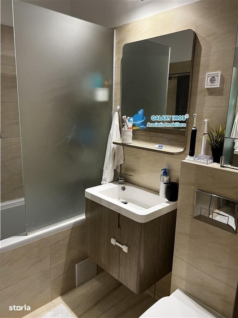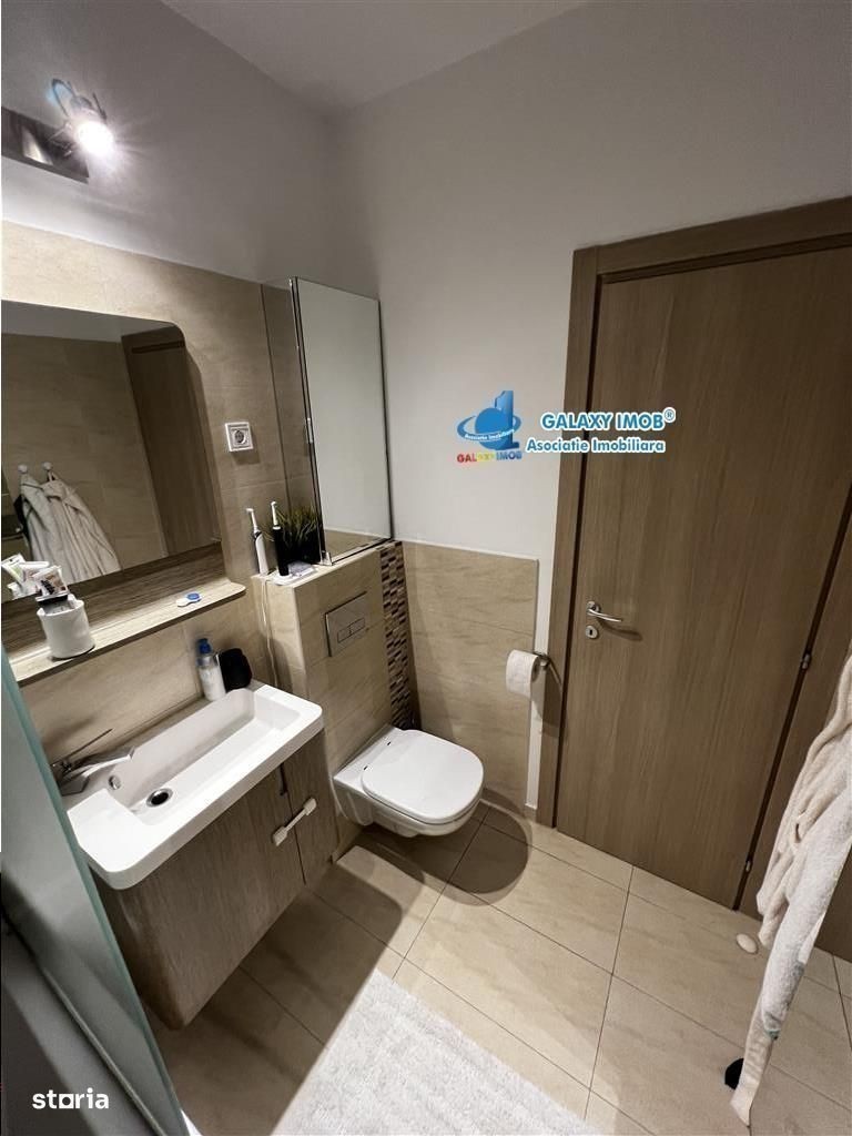 Vanzare apartament 2 camere cu curte proprie 53 mp in Greenfield Baneasa | Mobilat complet | Gata de mutat Vand apartament cochet de 2 camere, situat in complexul rezidential Greenfield Baneasa, o zona verde, linistita si sigura, la marginea padurii, cu acces rapid catre oras si facilitati moderne la doar cativa pasi. Apartamentul are o suprafata utila de aprox. 50 mp si o curte proprie de 53 mp, amenajata modern cu gazon, tuia pentru intimitate, alee pietonala si terasa spatioasa cu pergola electrica, un spatiu ideal pentru relaxare sau activitati in aer liber. Compartimentare eficienta: Living luminos, cu acces direct in curte Dormitor amenajat in stil natural, cu mobilier din bambus Bucatarie moderna, complet mobilata si utilata, cu iesire in curte Baie cu cada si geam pentru aerisire naturala Hol cu dressing mare incorporat Dotari si finisaje: Mobilier si electrocasnice incluse: aragaz, cuptor, hota, frigider, masina de spalat vase, masina de spalat rufe cu uscator, TV, aer conditionat Incalzire in pardoseala cu centrala proprie Parchet, gresie si faianta in tonuri neutre Feronerie si tamplarie de calitate superioara Pergola electrica si sistem automat de irigatie in curte Avantaje si facilitati in Greenfield: Cartier verde, cu aer curat si liniste Acces securizat, paza permanenta si supraveghere video Parcuri, locuri de joaca, restaurante, cafenele, club wellness cu piscina si sala fitness Magazine, farmacie, cabinete medicale si stomatologice Acces facil catre DN1, A3, Aeroport Otopeni si Mall Baneasa Apartamentul se vinde mobilat complet, fiind ideal atat pentru locuit, cat si pentru investitie (chirie imediata, cerere constanta in zona). Pret 160.000 euro, comision 2% Pentru mai multe detalii si programarea unei vizionari, te rog sa ma contactezi. Informatii eficienta energetica: Clasa energetica: Consumul de energie primara: Indicele de emisii echivalent CO2: Consum de energie din surse regenerabile: