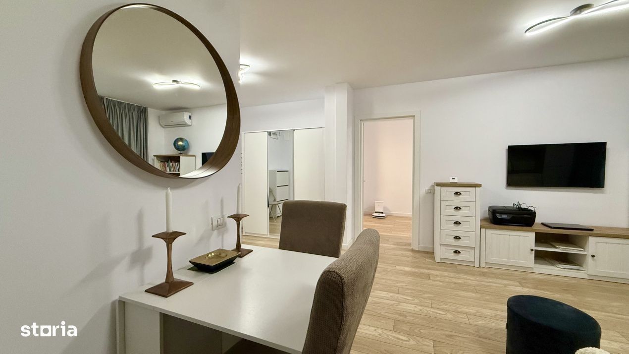 De inchiriat! Apartament cu 2 camere si balcon amplasat într-o locație de prestigiu din Pipera, în complexul MTM, pe Bulevardul Pipera nr. 1D, lângă rondul OMV- Petrom. Situat la etajul 4 din 5, acest apartament luminos și spațios oferă un stil de viață modern și confortabil, perfect pentru cei care doresc să se bucure de liniștea și siguranța unui cartier rezidențial de top, fără a renunța la avantajele orașului. Caracteristici: - Centrală proprie cu termostat și încălzire în pardoseală, pentru un confort termic superior, indiferent de sezon. - Aer condiționat instalat în zona de living, asigurând o atmosferă plăcută pe tot parcursul anului. - Living cu bucătărie open space care creează un spațiu amplu și primitor, ideal pentru întâlniri cu prietenii sau momente de relaxare în familie. - Bucătăria este complet mobilată și utilată, inclusiv cu mașină de spălat vase, care adaugă un plus de comoditate și eficiență vieții de zi cu zi. - Baie spatioasa dotată cu duș walk-in, spațiu pentru depozitare și mașina de spălat rufe, combinând utilitatea cu designul modern. - La intrare, vă întâmpină un hol spațios cu un spatiu pentru depozitare - Dormitorul se remarcă printr-un spațiu generos de depozitare, incluzând un dressing walk-in. Dispune de un loc de parcare suprateran, fix in fata scarii, inlcus in pret. Disponibil imediat Conditii de inchiriere: 1 luna de chirie + 1 luna de garantie Comision 50% din costul primei luni de chirie Se poate organiza si o vizionare online prin intermediul videoclipurilor detaliate. Pentru mai multe detalii sau pentru a programa o vizionare, nu ezitati să ma contactați.