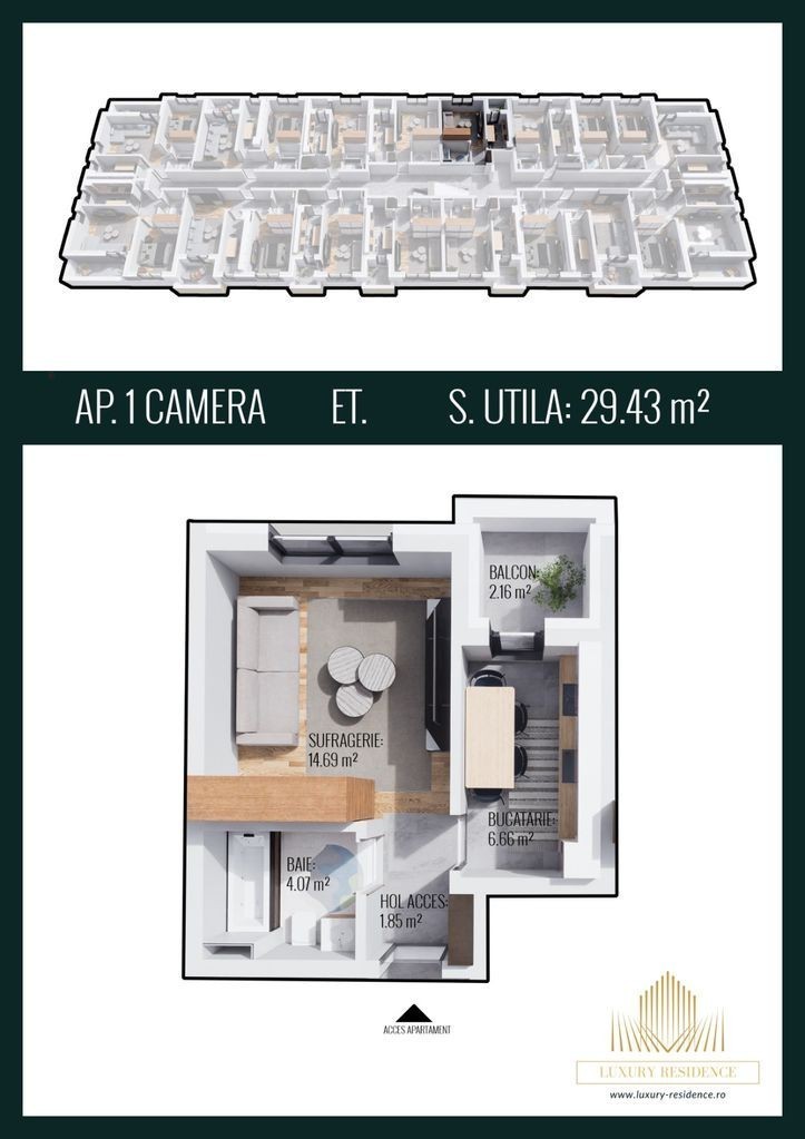 Vă propunem spre vânzare un apartament cu 1 camere, situat în complexul rezidențial Luxury Residence, în Chiajna, pe strada Ilie Petre, numărul 82 A. Aceasta este o locație care oferă liniște și acces rapid la diverse atracții din zonă, precum Militari Shopping Center,gama variata de magazine si restaurante.