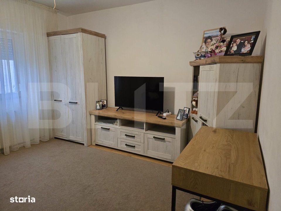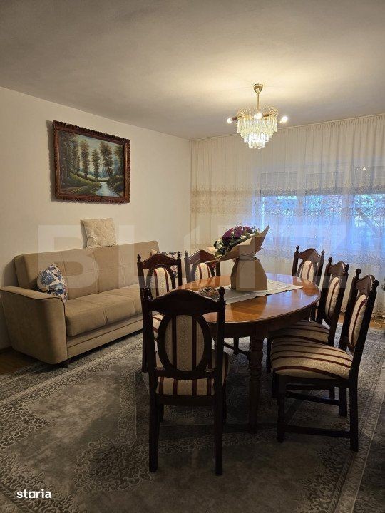 Blitz ofera spre vânzare un apartament deosebit, situat într-o zonă frumoasă și liniștită din cartierul Soarelui. Detalii apartament: Suprafață: 76,5 mp, spațios și bine compartimentat. Camere: 3 camere mari și luminoase, perfecte pentru o familie. Bucătărie: spațioasă, cu ieșire pe o terasă amenajată, dotată cu zonă de depozitare. Balcon: mare și închis, ideal pentru relaxare sau depozitare. Băi: 2 băi spațioase, moderne și bine întreținute. Mobilier: foarte frumos mobilat, cu gust și bine întreținut. Avantaje: Vecini foarte liniștiți. Aproape de magazine, școală, teren de fotbal și Podul Nou. Zona ideală pentru familii sau persoane care își doresc liniște și confort. Acest apartament reprezintă o combinație perfectă între spațiu, confort și locație. Nu ratați ocazia de a-l viziona!