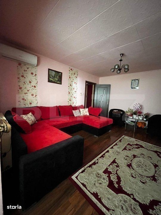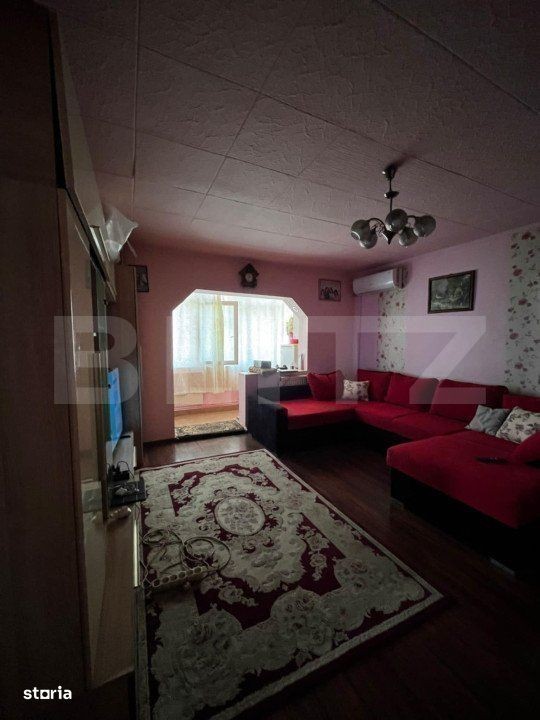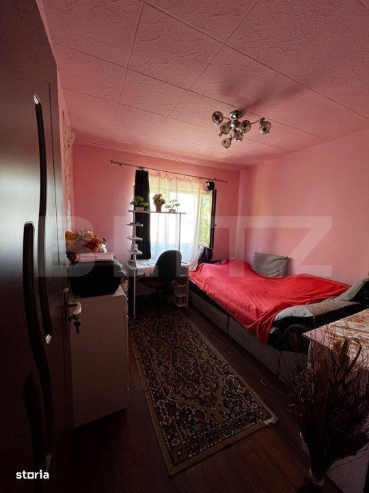 Blitz are oportunitatea de a va oferi spre vânzare un apartament spațios și bine întreținut, situat în zona Micro 16. Detalii proprietate: Suprafață utilă: 66,16 mp Compartimentare: 3 camere (2 dormitoare, 1 living), 1 bucătărie, 1 baie Etaj: 2 din 4 Construcție: beton Caracteristici: Izolație: Exterior - 10 cm Interior - 3 cm Pereți comuni interiori cu vecinii - 3 cm Baie: geam modificat și mărit Balcon: inchis cu termopane Beci: există, necesită compartimentare Încălzire: centrală proprie Renovări recente: Geamuri termopan noi maro Instalație electrică schimbată Alte beneficii: Apartamentul se vinde complet mobilat și utilat. Zona este una deosebit de bună: liniștită, aproape de parc, școală, magazine și stații de transport în comun. Nu ratați această ocazie! Pentru detalii suplimentare și vizionare, vă rugăm să ne contactați.
