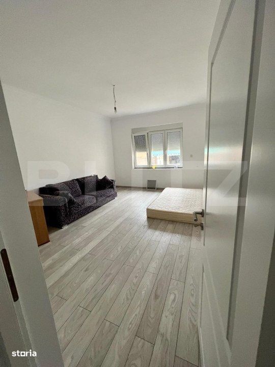 Blitz oferă spre vânzare, apartament de 2 dormitoare și un living spațios cu bucătărie open-space. O baie ultra moderna și o terasa care a fost închisă complet căreia i se pot atribui diverse funcții: dressing, amenajarea unui spațiu de depozitare, reamenajarea unei terase, sau chiar a unui spațiu pentru un bebeluș. Locuința este recent renovată, încălzirea acesteia este în pardoseala, geamurile dispun de jaluzele electrice, iar clădirea este reabilitata termic. În plus, apartamentul beneficiază de un beci, semifinisat, unde se pot amenaja spații de depozitare, baie de serviciu sau o cămară. Imobilul se afla într-o casă în asociație, la parterul acesteia, structura clădirii fiind P+1. De asemenea, beneficiați de un teren de 100mp, langa casa, și se vinde cu 10000 euro peste prețul apartamentului. Pentru mai multe detalii sau pentru o vizionare, nu ezitați sa ne contactați.