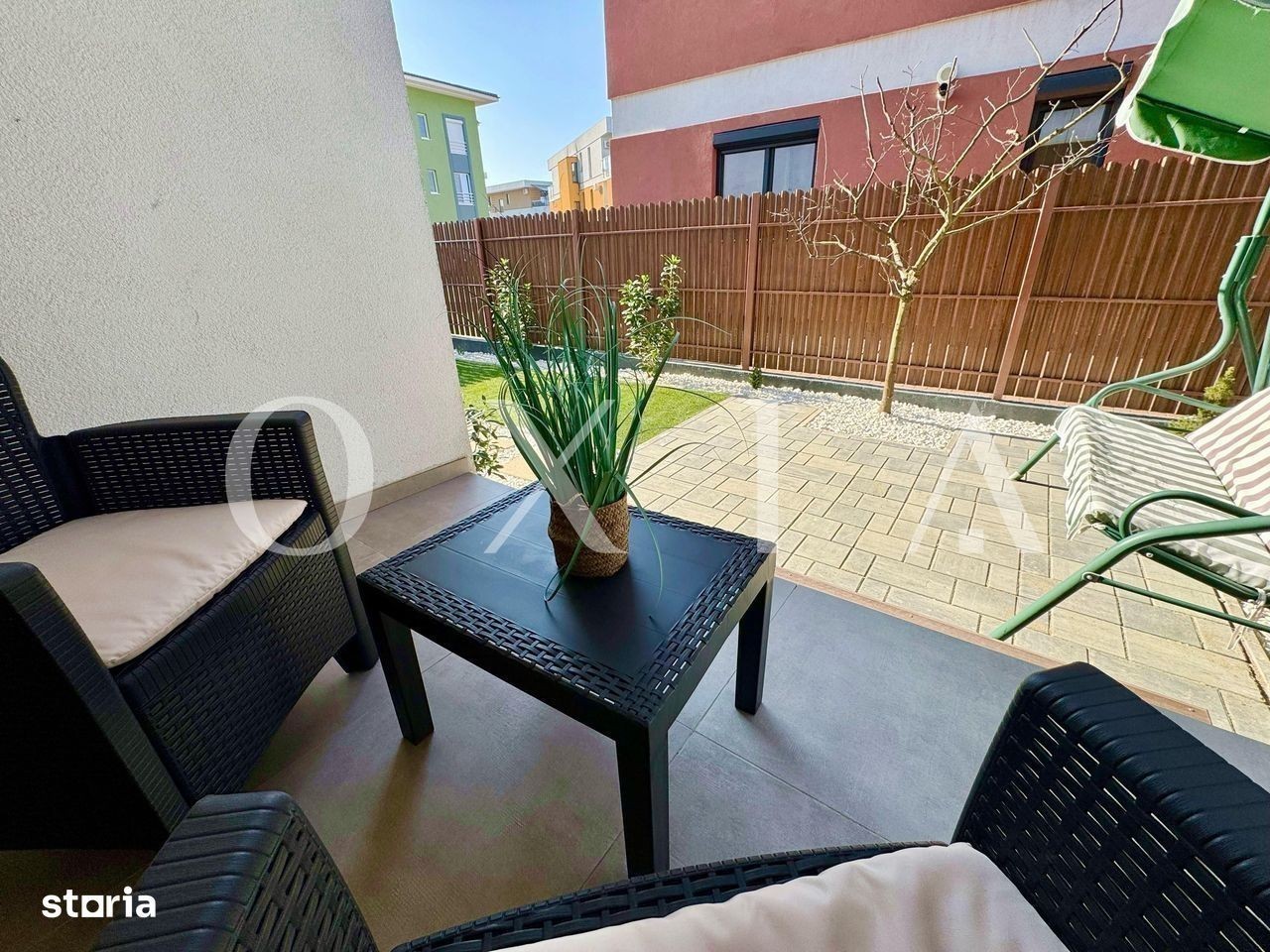 OXIA prezinta spre vanzare apartament cu 3 camere, situat in Dumbravita, in apropiere de Hornbach, la parter, in imobil cu regim P+2, semidecomandat, cu suprafata de 61 mp utili+ 7 mp terasa acoperita si 54 mp gradina proprie, compartimentat astfel: Hol acces Living cu bucatarie open space Dormitor Hol tranzit Baie cu cada si geam Dormitor Terasa cu acces din dormitor. Confortul termic este asigurat prin intermediul centralei proprii pe gaz cu incalzire in pardoseala si prin intermediul sistemului de climatizare. Apartamentul se vinde complet mobilat si utilat conform pozelor de prezentare. Proprietatea dispune de un loc propriu de parcare. Pret: 146 000 Euro + Comision Agentie. SERVICII OXIA Echipa noastra dedicata ofera consultanta juridica si financiara pe tot parcursul tranzactiei, asigurand un proces simplu si transparent. Pentru mai multe detalii sau pentru stabilirea unei vizionari, va rugam sa ne contactati la numarul de telefon