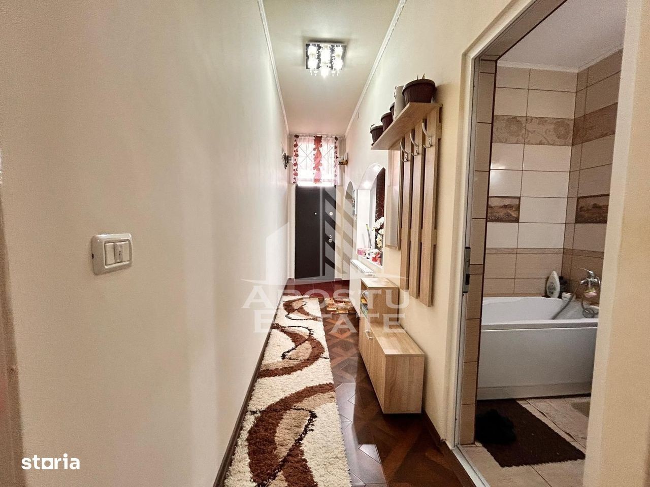 Apostu Estate vă oferă spre vânzare un apartament elegant, situat într-o zonă centrală de prestigiu, Piața Maria, ideal pentru cei care apreciază confortul și proximitatea față de cele mai importante puncte de interes ale orașului. Acest apartament combină perfect eleganța, spațiul generos și beneficiile unei locații centrale cu facilități rare, precum garajul și locul de parcare. Este alegerea ideală pentru o locuință sau o investiție cu potențial ridicat! Suprafață generoasă: 80 mp utili Compartimentare inteligentă: hol de acces, bucătărie, debara, baie, sufragerie și dormitor Anexe valoroase: Boxă spațioasă de 10 mp la demisolul înalt al clădirii Garaj propriu și loc de parcare dedicat în curtea interioară închisă, accesibil prin poartă electrică - un beneficiu rar în zona centrală! Avantaje unice: Amplasare centrală de excepție: La doar câteva minute de mers pe jos de Piața Victoriei Aproape de Colegiul Național Bănățean, Spitalul CFR și Facultatea de Medicină 2 Zonă cu acces rapid la mijloace de transport, restaurante, cafenele și alte facilități urbane Confort complet: Apartamentul se vinde complet mobilat și utilat, gata pentru a fi locuit imediat Pod reabilitat și curte privată: Un plus de siguranță și intimitate pentru viitorii proprietari Prețul solicitata de 179.000 euro este negociabil