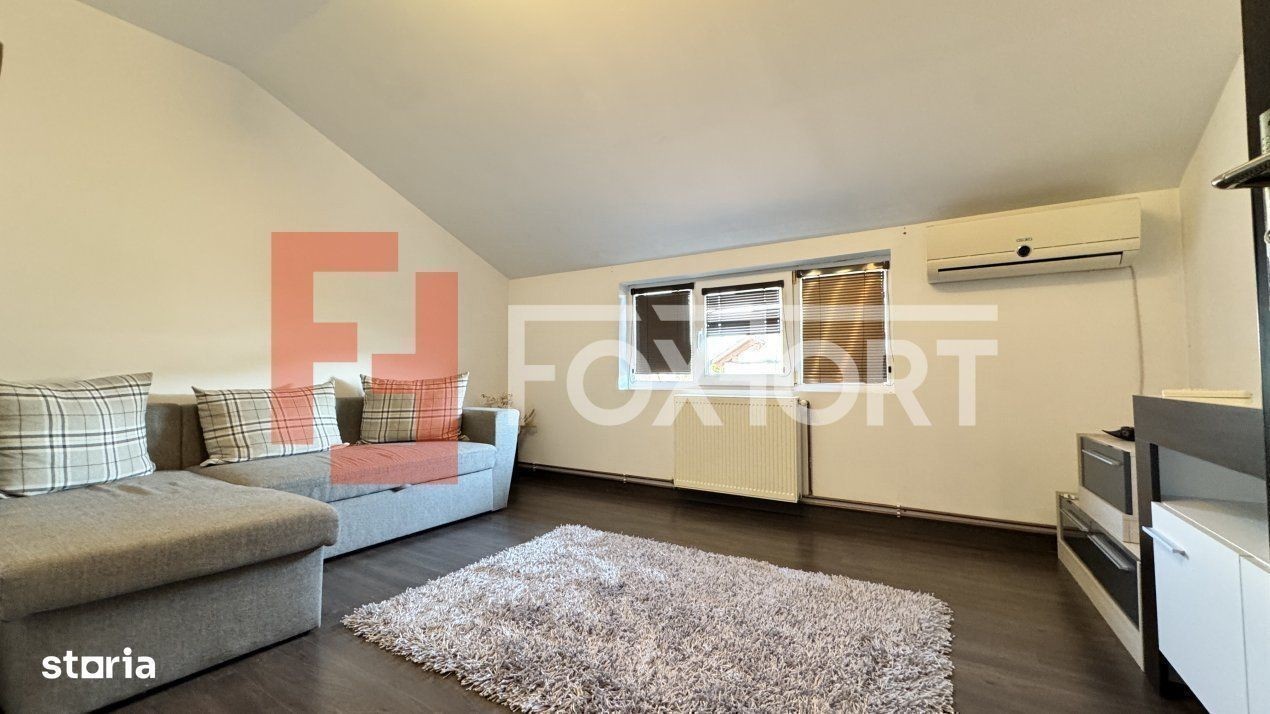 Apartament cu 2 camere de vanzare in Timisoara, zona Spitalul Judetean. FOXFORT propune spre vanzare un apartament cu 2 camere, decomandat, situat in localitatea Timisoara, zona Spitalul Judetean, aflat la etajul Mansarda intr-un bloc cu regim de inaltime pe Parter + 4 Etaje + Mansarda. Anul constructiei 2008, structura beton, material zidarie caramida. Suprafata utila de 44 mp. Apartamentul este structurat astfel: - Hol; - Bucatarie; - Baie; - Living; - Dormitor. Finisajele interioare sunt moderne: - Usa intrare: metal; - Usi interioare: celulare; - Tamplarie ferestre: pvc; - Podele: parchet, gresie. Apartamentul se vinde mobilat si utilat: plita pe gaz, cuptor electric, masina de spalat rufe, frigider cu congelator. Incalzirea se realizeaza prin intermediul centralei proprii prin calorifere. Apartamentul dispune de sistem de climatizare (A.C.). Pretul este de 72.990€ - COMISION 0%. Se accepta ca si modalitate de plata surse proprii sau credit bancar. Indicator performanta energetica: Clasa B ID intern: V8597