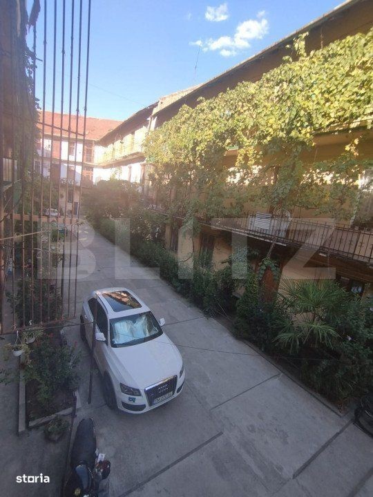 Blitz va prezinta un apartament deosebit, situat într-o clădire istorică la doar câțiva pași de zona centrală, care îmbină farmecul vremurilor trecute cu confortul modern. Amplasat la etajul 2, apartamentul a fost renovat complet, păstrând însă elementele originale care îi conferă un aer aparte. Intrarea se face într-un antreu spațios, perfect pentru a te întâmpina după o zi agitată. În față se află baia, iar în stânga, zona pentru servit masa și bucătăria modernă, echipată cu toate facilitățile necesare pentru a te bucura de gătit. În dreapta, livingul cu un aer de poveste îți oferă un spațiu primitor și relaxant, unde te poți destinde în fiecare seară. De aici, ai acces către dormitorul spațios, un sanctuar al liniștii, ideal pentru a-ți încărca bateriile. Un alt avantaj al acestui apartament este curtea mare, frumos amenajată, unde te poți bucura de momente de relaxare în aer liber. Cu acces auto, această curte oferă și mai multă comoditate. Atmosfera de vacanță te învăluie încă de la intrarea pe poarta clădirii, indiferent de sezon. Apartamentul funcționează în prezent cu totul electric, însă există posibilitatea de a folosi gaz, contorul fiind deja montat la ușă. Fie că ești în căutarea unei locuințe confortabile, fie că vrei să faci o investiție inteligentă, acest apartament este alegerea perfectă pentru tine. Nu mai aștepta, vino să descoperi locuința care îți va oferi instant sentimentul de "acasă"! Va asteptam cu drag la vizionare!