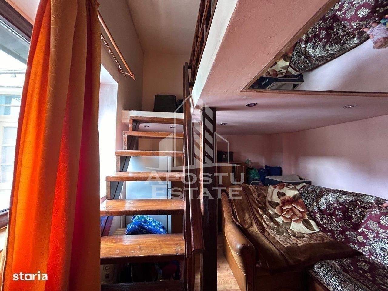 Apostu Estate vă oferă spre vânzare un apartament spațios situat pe două nivele, într-o curte intimă cu doar 5 locatari, în Piața Maria, una dintre cele mai dorite zone ale Timișoarei. Cu o suprafață generoasă și teren în proprietate, această locuință este ideală pentru cei care își doresc confortul unei case și accesibilitatea unui apartament central. Caracteristici principale: Suprafață utilă: 110 mp, bine compartimentați. Teren: 200 mp în proprietate, cu posibilitate de parcare în curte. Compartimentare: Parter: Terasă închisă, perfectă pentru relaxare indiferent de anotimp. Bucătărie practică și luminoasă. Living spațios. Cameră versatilă, ideală ca birou sau dormitor de oaspeți. Baie modernă, cu geam pentru aerisire. Etaj mansardă: 2 dormitoare generoase și bine luminate. Detalii tehnice: Izolație exterioară: Clădirea este anvelopată cu polistiren de 10 cm, asigurând eficiență energetică. Ferestre: Geamuri termopan pentru izolare termică și fonică. Încălzire: Centrală proprie cu calorifere. Finisaje: Gresie și faianță în bucătărie și baie. Parchet în camere, bine întreținut. Mobilier: În stare foarte bună, inclus în preț. Utilități și facilități: Utilități complete: curent, apă din rețea, canalizare, gaz, internet prin fibră optică, cablu TV. Acces facil: Statia de transport în comun este la doar 1 minut de mers pe jos. Avantaje suplimentare: Teren privat: 200 mp în curte, cu spațiu pentru parcare sau amenajare personalizată. Localizare excelentă: Piața Maria, aproape de centru, cu acces rapid la punctele de interes și zonele comerciale. Clădire renovată: Apartamentul și întreaga clădire au fost complet renovate, fără a necesita investiții suplimentare. Vă invităm să descoperiți acest apartament deosebit! Contactați-ne pentru mai multe detalii sau pentru a programa o vizionare. Vă așteptăm cu drag!