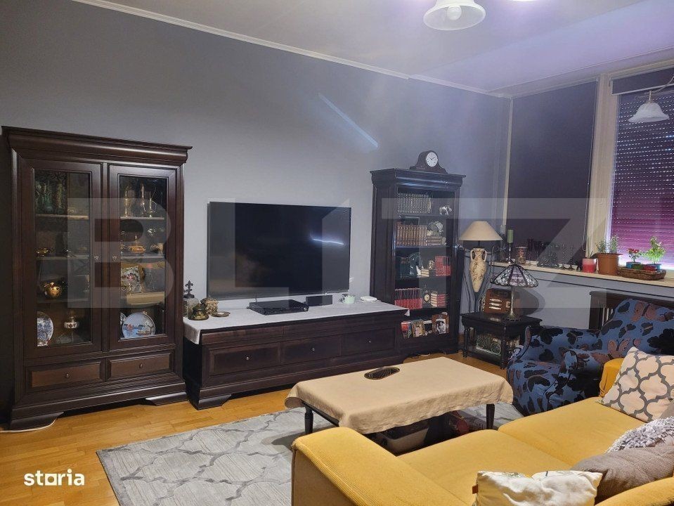 Blitz ofera spre vanzare un superb apartament, cu 3 camere decomandate, aerisit la etajul 1, cu suprafata utila de 102 mp, si inaltimea camerelor de 3m. Apartamentul se afla intr-un bloc situat central, cu 5 etaje, construit in 2009, avand vedere spre raul Bega. Blocul dispune de doua lifturi. Structura apartamentului este formata din 3 camere (living si doua dormitoare unul cu baie proprie), 2 holuri spatioase, bucatarie open space, 2 bai si balcon inchis. Se vinde complet mobilat si utilat, (mobila la comanda), geamurile cu rulouri electrice, centrala termica, aparat de aer conditionat. Avand o pozitie excelenta, situat central in Timisoara, intr-o zona cu oportunitati de inchiriere si cu diverse facilitati: mijloace de transport, supermarketuri, parcuri, scoli, sali de fitnes. Acest apartament este ideal atat pentru a locui, intr-o zona centrala si totusi linistita, cu vedere deosebita, cat si pentru investitie, zona fiind foarte solicitata pentru inchiriere, atat in sistem clasic, lunar cat si in regim hotelier. Doriți mai multe informații? Suntem bucuroși să vă ajutăm să alegeți cea mai bună casă pentru familia dumneavoastra. Va asteptam la vizionare!