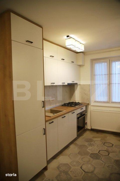 Blitz va propune spre vanzare un apartament deosebit in zona Ultracentrala, cu acces imediat la mijloace de transport in comun, magazine, restaurante, banci etc. Apartamentul este situat la etajul 4 al unei cladiri cu regim de inaltime P+7E, avand o suprafata de 50 mp si o compartimentare semidecomandata. Incalzirea apartamentului se face prin calorifere cu ajutorul centralei proprii. Apartamentul se vinde complet utilat si mobilat, exact asa cum arata in poze, avand un design deosebit. Va asteptam la vizionare!