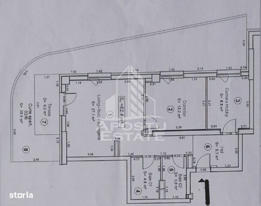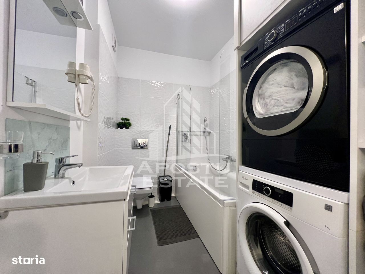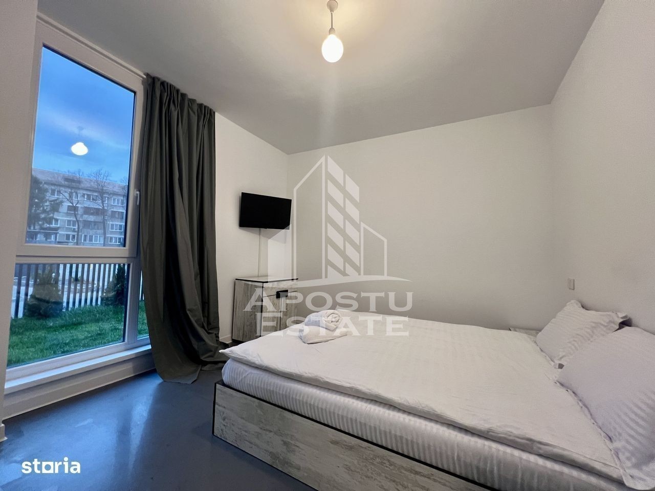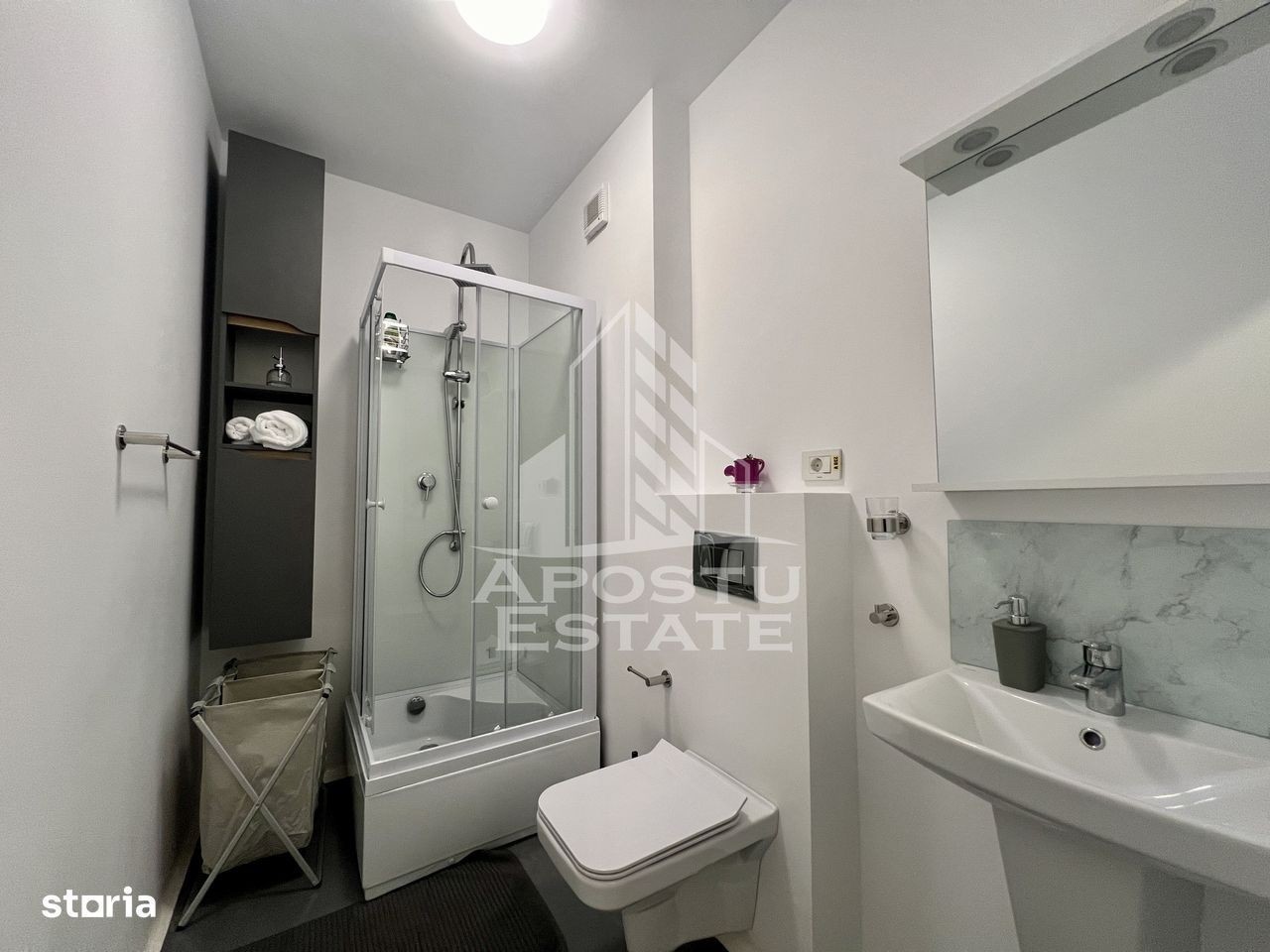 APOSTU ESTATE va propune spre vanzare un apartament cu 3 camere intr-un bloc nou din zona Tipografilor. Apartamentul este amplasat la parterul imobilului si dispune de o curte proprie de 40mp si o terasa de 6mp. Beneficiaza de 2 locuri de parcare cu acces cu telecomanda in parcarea subterana a imobilului. Confortul termic se realizeaza prin intermediul centralei proprii pe gaz cu sistem de incalzire prin pardoseala. Ferestrele sunt realizate din tamplarie PVC cu geamuri tripan 4 anotimpuri., iar usa de acces este metalica. In incinta complexului exista magazin Mega Image, statie de incarcare masini electrice, loc de joaca pentru copii, Easybox, iar pana in centrul orasului sau pana la Iulius Mall distanta de mers pe jos este de 14 minute. Cu o suprafata utila de 63mp, este compartimentat astfel: - hol acces spatios - 2 dormitoare decomandate - baie cu dus - baie cu cada - living cu bucatarie open-space si acces catre terasa Proprietarul vinde apartamentul mobilat si utilat, cum se vede in imagini. Dotari: aparat de aer conditionat smart, masina de spalat vase, masina de spalat rufe, uscator de rufe, cuptor electric si plita, cuptor microunde, aparat cafea, televizoare, aspirator smart. Va asteptam cu drag la o vizionare!