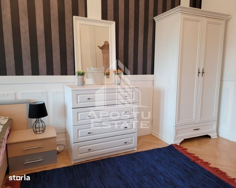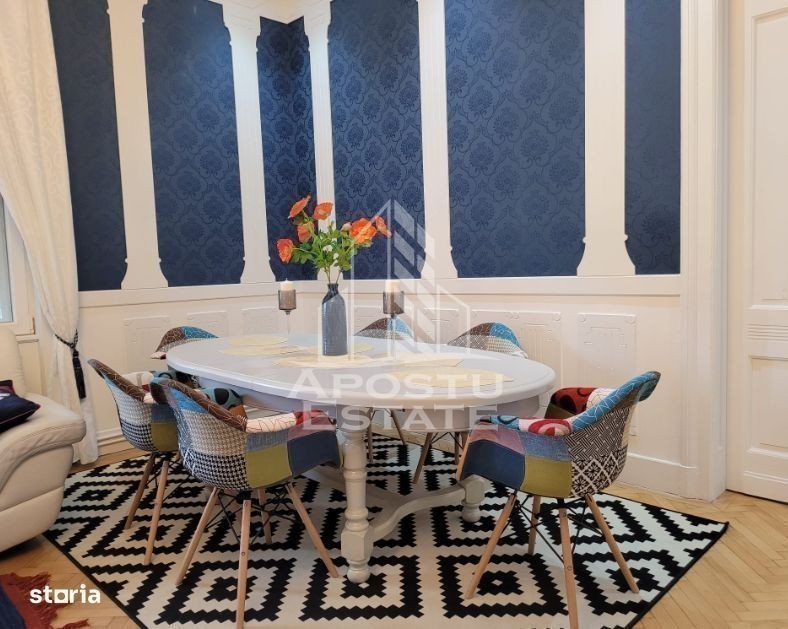 Apostu Estate va ofera spre vanzare un apartament deosebit situat la doar cateva minute de centrul orasului in zona bisericii Sinaia. Apartamentul dispune de 134 mpu si este renovat in intregime. Beneficiaza de finisaje de cea mai buna calitate si este amenajat sub supravegherea si la indicatiile unui designer interior. Nu necesita investitii iar predarea se va face precum in poze complet mobilat si utilat. Confortul termic este realizat prin intermediul centralei proprii si a aparatului de aer conditionat. Compartimentare: hol de acces sufragerie 3 dormitoare 3 bai o bucatarie o debara un balcon exterior. Dormitorul matrimonial dispune de baie proprie. In apropierea imobilului se afla Casa de Cultra a Studentilor Colegiul National Banatean Biserica Nasterii Maicii Domnului Piata Iosefin Piata Maria Complexul Studentesc numeroase spatii comerciale dar si statii ale mijloacelor de transport in comun. Apartamentul se va vinde partial mobilat. Va asteptam cu drag la o vizionare! ID intern: 10509.