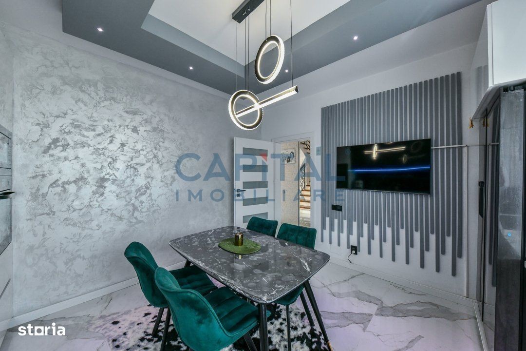 Capital Imobiliare va prezinta un duplex spectaculos situat în Florești, Zona Terra, într-o zonă exclusivistă de case, cu vecini liniștiți și un ambient ideal pentru o viață confortabilă și relaxată. Proprietatea se desfășoară pe o suprafață utilă de 150 mp, construită pe un teren de 240 mp și oferă o compartimentare gândită inteligent, ideală pentru familii: Parter: Living spațios cu zonă de relaxare Bucătărie generoasă cu zonă de luat masa Baie de serviciu Hol cu spații de depozitare Etaj: 3 dormitoare, dintre care dormitorul matrimonial beneficiază de baie proprie Baie principală Terasă superbă de 27 mp Balcon de 5 mp Dotări Premium: Complet mobilat Design interior realizat de firmă de specialitate - finisaje ultramoderne, atent selecționate Încălzire în pardoseală la parter (pe 3 zone) și încălzire cu calorifere la etaj Avantaje: Curte privată generoasă - perfectă pentru relaxare sau petreceri în aer liber Cartier liniștit, cu vecini civilizați Zonă în continuă dezvoltare, cu acces rapid către facilități esențiale COMISION ZERO la cumparare O locuință ideală pentru cei care își doresc lux, confort și intimitate, într-un spațiu deja pregătit pentru mutare. Pentru mai multe detalii sau pentru a programa o vizionare, contactează-mă cu încredere!