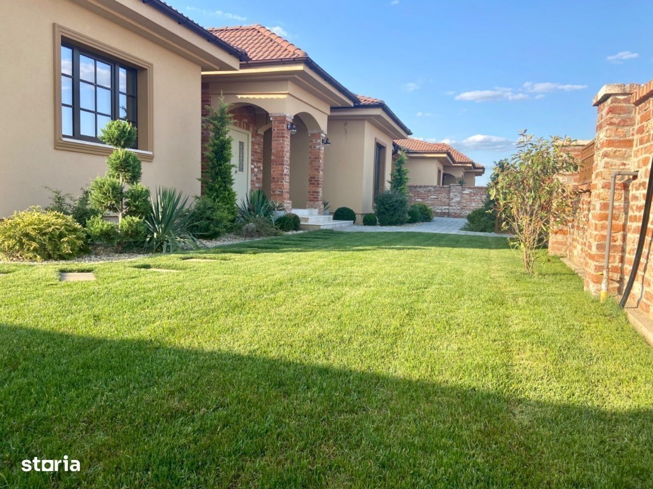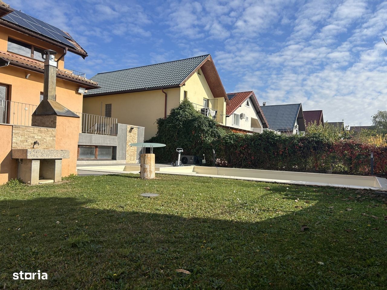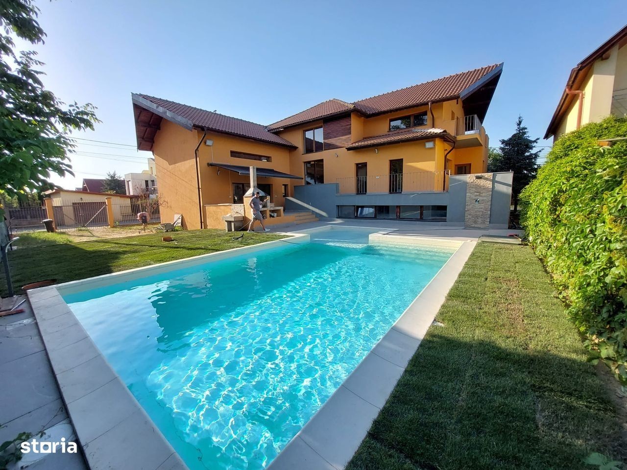 Proprietar vând o casa individuală în Dumbrăvița pe str Ferventia foarte aproape de Lidl, Fropin. Casa are o suprafață utilă de 440 mp dispusă pe demisol, parter și mansardă și un teren de 730mp în proprietate. Proprietatea este ideală ptr o familie mai numeroasă fiind foarte mare. Toate finisajele sunt de calitate superioară : parchet lemn masiv, tâmplărie lemn masiv, uși interioare lemn masiv, glafuri granit, trepte scară interioară granit. Dispune de panouri fotovoltaice, piscină exterioară încălzita, duș exterior ptr piscină, grill. garaj dublu, curte amenajată cu plante și gazon cu sistem de irigație. Se vinde parțial mobilată.