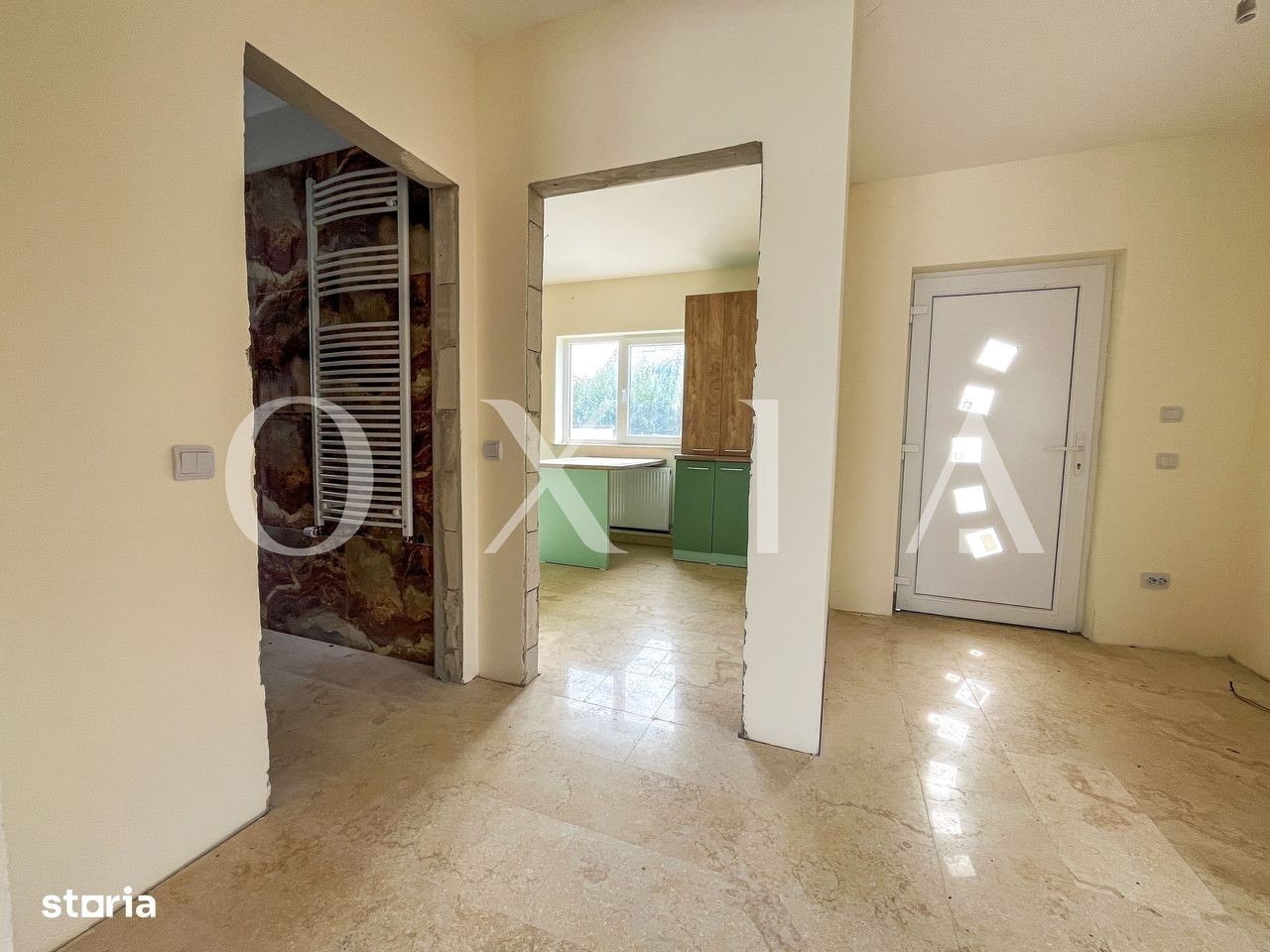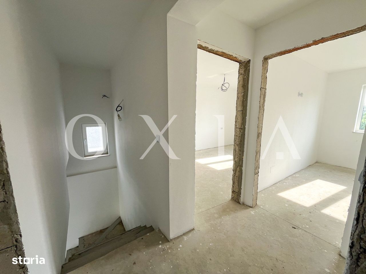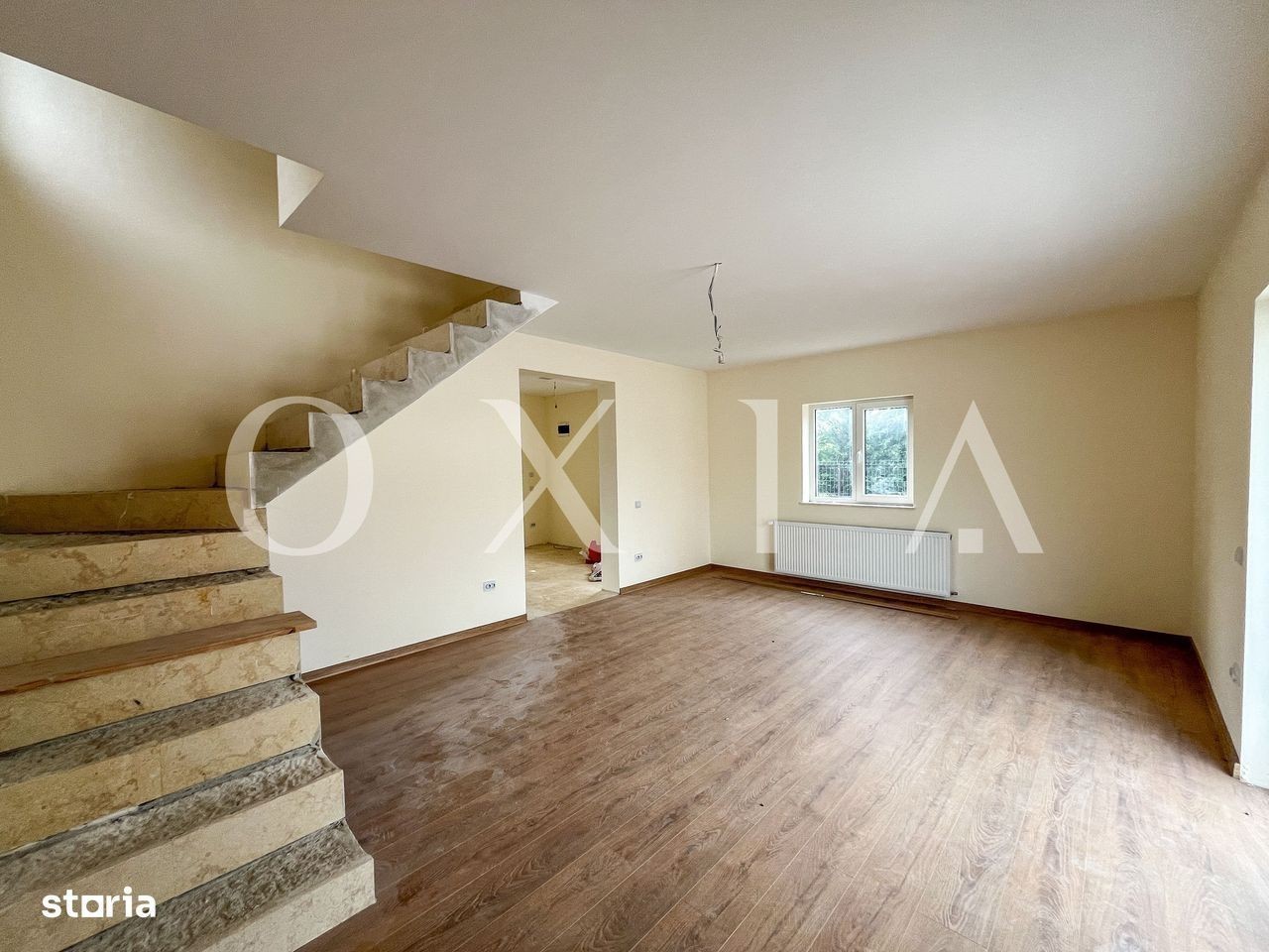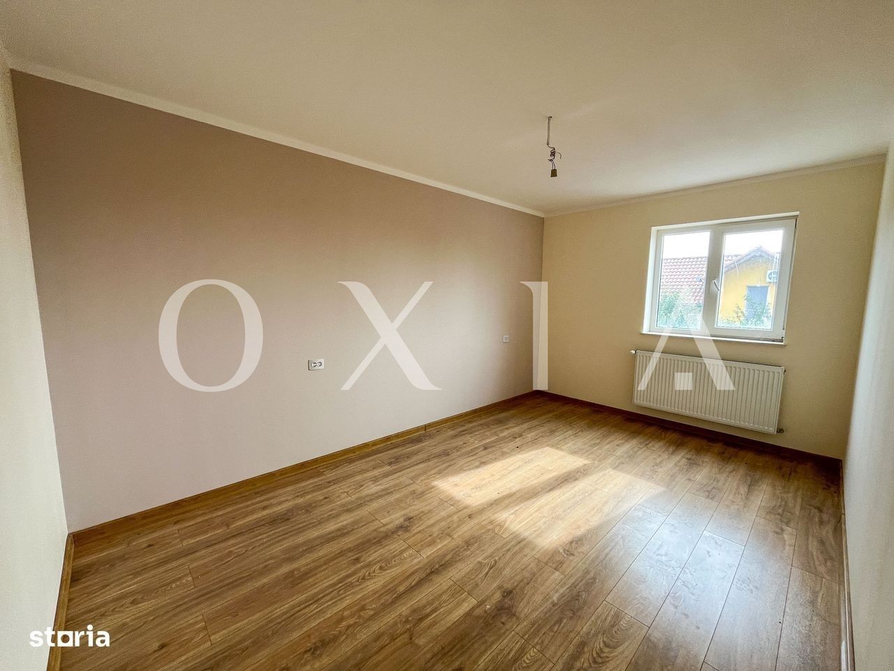 OXIA prezinta spre vanzare casa in Giarmata Vii - vatra satului, cu suprafata terenului de 215 mp, suprafata construita de aproximativ 150 mp, suprafata utila de aproximativ 105 mp, compartimentat astfel: Parter: Hol acces Living, Bucatarie Baie Terasa cu acces din living Etaj: Hol tranzit 3 Dormitoare Baie Imobilul beneficiaza de finisaje de calitate: geamuri termopan, parchet laminat, gresie, faianta, lavabil, usi interior din lemn. Confortul termic este asigurat de centrala proprie cu incalzire in calorifere si prin intermediul sistemului de climatizare. Casa este construita din caramida, acoperita cu tabla Lindab, izolata dublu cu vata, izolata cu polistiren. Accesul cu masina se face prin poarta electrica. Curtea si gradina sunt amenajate cu zona de barbeque si plante/pomi decorativi, oferind un spatiu placut si relaxant. Proprietatea dispune si de o terasa neacoperita de aproximativ 15 mp, perfecta pentru momentele petrecute in aer liber. Dispune de toate utilitatile. Drumul de acces este asfaltat. Sunt disponibile 3 unitati : Predare la Gri 159.000 Euro + Comision Agentie Predare la Alb 179.000 Euro + Comision Agentie Predare la cheie cu bucataria mobilata/utilata 199.000 Euro + Comision Agentie Se accepta si achizitionarea prin intermediul unui credit bancar. Oferim consultanta financiara si juridica, gratuita, pe tot parcursul procesului. Pentru mai multe detalii despre aceasta proprietate, sau pentru stabilirea unei vizionari ne puteti contacta la numarul de telefon: