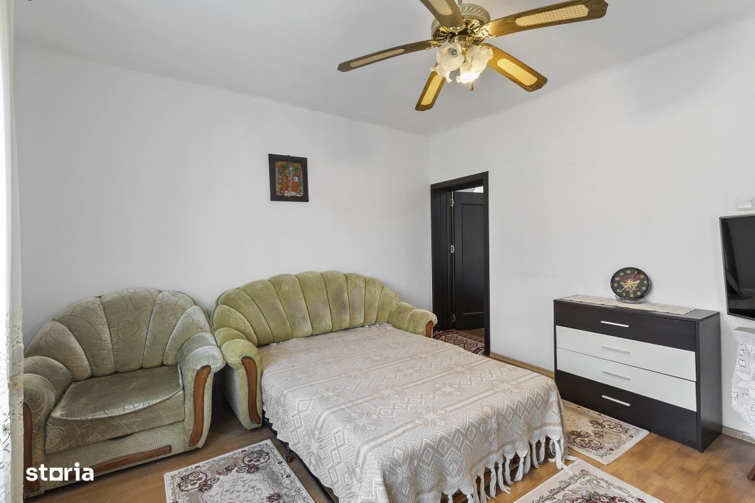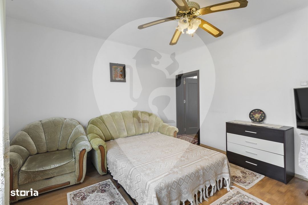 Suntem încântaţi să vă prezentăm această proprietate unică disponibilă pentru vânzare. Această casă frumoasă şi spaţioasă vine cu o curte proprie generoasă de 526 de metri pătraţi şi este amplasată într-o zonă liniştită şi privată. Este împărţită în două corpuri separate, oferind oportunitatea ideală pentru cei care doresc să locuiască alături de membrii familiei sau să obţină un venit suplimentar prin închirierea unuia dintre corpuri. Primul corp al casei oferă o compartimentare funcţională şi spaţioasă, cu 3 camere generoase care pot fi aranjate în funcţie de nevoile dumneavoastră. Acest corp include, de asemenea, o bucătărie complet utilată, o baie modernă şi un hol primitor. Dacă aveţi nevoie de spaţiu suplimentar de depozitare, veţi fi încântat să aflaţi că casa dispune de o cameră de depozitare (camara) şi un beci, unde puteţi păstra în siguranţă obiecte preţioase, echipamente sau alte bunuri personale. Al doilea corp al casei este amenajat pe două niveluri. La parter, veţi găsi o bucătărie complet utilată, ideală pentru prepararea delicioaselor mese într-un cadru intim. La etaj, sunt amplasate două camere şi o baie, oferind spaţiu confortabil pentru oaspeţi sau membrii familiei. Această proprietate oferă multiple opţiuni şi beneficii pentru viitorii proprietari. Datorită compartimentării în două corpuri separate, puteţi alege să locuiţi într-unul dintre ele şi să închiriaţi celălalt pentru a obţine venituri suplimentare. De asemenea, aceasta poate fi o opţiune ideală pentru familiile extinse care doresc să locuiască împreună, păstrând totuşi intimitatea fiecăruia. Cu o curte privată încântătoare, aveţi posibilitatea de a vă relaxa în aer liber, de a petrece timp de calitate cu familia şi de a vă bucura de frumuseţea naturii în propriul dvs. spaţiu privat. Preţul acestei proprietăţi este unul atrăgător şi reflectă atât valoarea imobilului, cât şi beneficiile unice pe care le oferă. Pentru a programa o vizionare sau pentru a obţine mai multe informaţii, vă invit să mă contactaţi. Sunt aici pentru a vă ghida în procesul de achiziţie şi pentru a vă ajuta să vă găsiţi casa perfectă, adaptată nevoilor dumneavoastră. Pentru detalii suplimentare va stam la dispoziţie