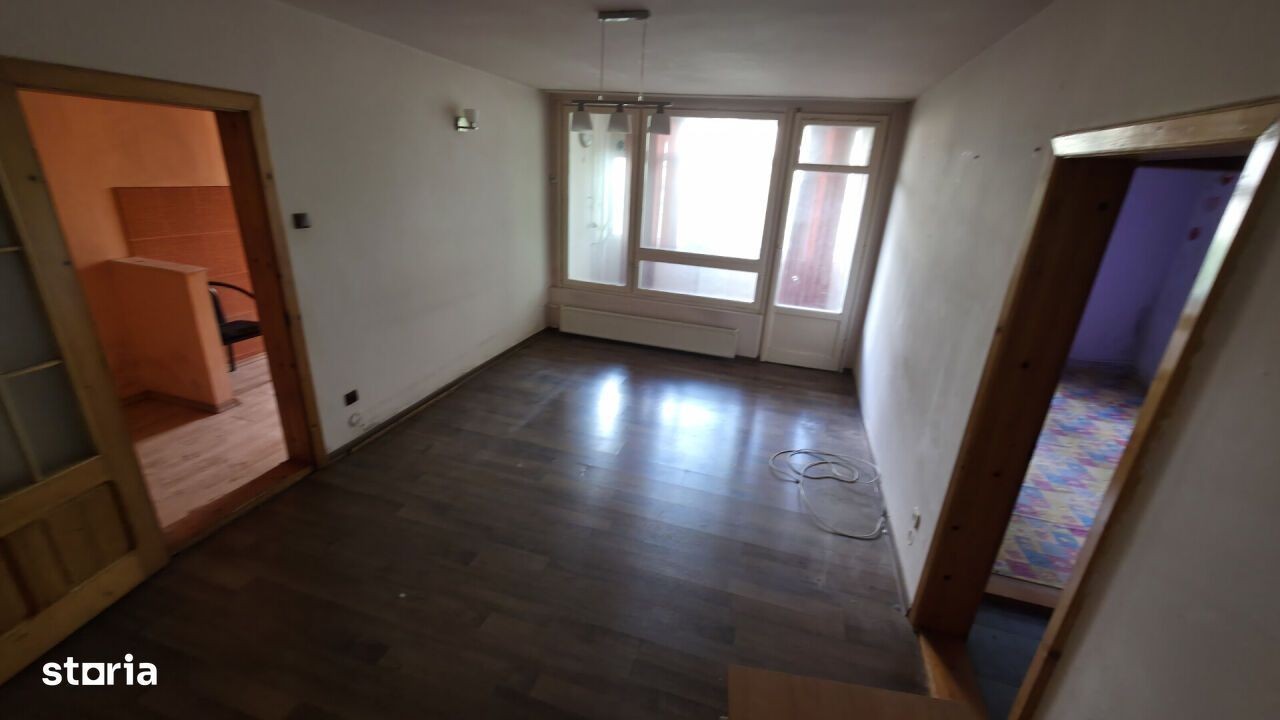Direct proprietar, vand apartament semi-decomandat cu doua camere amplasat la parter in bloc P+4E situat pe Aleea Lalelelor, bl. Experimental, sc.1, parter, ap.3, Deva. Apartamentul este compus din : hol intrare, bucatarie, sufragerie, hol intermediar, baie, debara si dormitor, nu are imbunatatiri, necesita renovare completa. Detalii compartimentare spatiu: Suprafata utila [mp] 1 Camera 19.3 2 Camera 11.8 3 Bucatarie 11.9 4 Baie 3.8 5 Hol 1.5 6 Camara 1.3 TOTAL SUPRAFATA UTILA = 49.6 mp 7 Balcon inchis 3.7 SUPRAFATA TOTALA = 53.3 mp