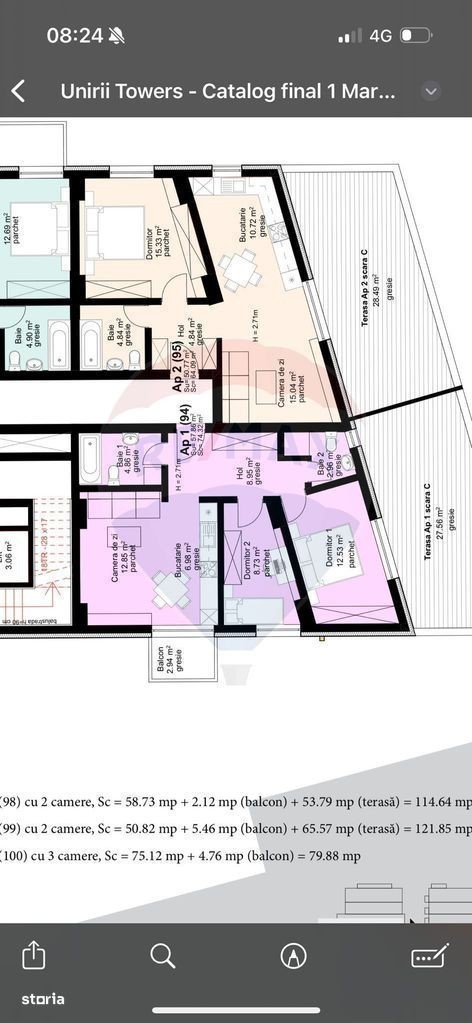 Vă propunem spre vânzare un apartament cu 3 camere situat într-o clădire modernă ce face parte din Unirii Towers, un proiect imobiliar premium construit la înalte standarde de calitate, care va cuprinde un total de 141 apartamente, spații comerciale și spații de birouri. Unirii Towers este amplasat pe Bulevardul Unirii din Baia Mare, într-o zonă centrală, cu acces rapid la transport în comun, străzi asfaltate și iluminate, iar termenul estimat de finalizare este Decembrie 2026. Proiectul se remarcă prin detalii constructive superioare: utilizarea materialelor cu rol de izolare fonică și termică pe pereții dintre apartamente și pe placa de beton, grosimea plăcii de 23 cm, zidărie perimetrală și între apartamente din cărămidă de 30 cm, fațadă termoizolată cu vată bazaltică și tâmplărie de calitate superioară. Ușile de intrare au lățime utilă de 1 metru și înălțime utilă de 2,2 metri. Un plus major este eliminarea țevilor și contoarelor de gaz din interiorul apartamentelor și din casa scării, centralele de scară și de nivel fiind amplasate în spații special amenajate. Înălțimea utilă în apartamente este de 2,70 metri, cu 15 cm mai mult față de standard, iar instalațiile electrice sunt SMART, cu sistem centralizat de control al luminilor și echipamentelor electrice. Presiunea apei este optimizată la 3 bari, indiferent de nivelul la care se află apartamentul. Apartamentul cu 3 camere propus spre vânzare este situat la etajul 5 din S+P+8E și are o suprafață utilă de 57,86 mp, fiind decomandat, cu o configurație ideală: living cu bucătărie open space, două dormitoare luminoase, două băi, o terasă generoasă de 27,56 mp și un balcon suplimentar de 2,94 mp, suprafața totală ajungând la 88,36 mp. Apartamentul se predă la stadiul semifinisat, cu pereți tencuiți, șapă elicopterizată la nivelul apartamentului și terasei, centrală termică în condensație pe nivel și încălzire în pardoseală, instalații electrice (fără aparataje) și sanitare executate (fără obiecte sanitare). Ferestrele sunt din PVC cu sticlă tripan, iar ușa de intrare este metalică, robustă și sigură. Imobilul beneficiază de locuri de parcare subterană disponibile la prețul de 12.000 Euro fără TVA. Prețul apartamentului nu include TVA și este aferent stadiului semifinisat. Cota de TVA se aplică conform normelor în vigoare. Pentru realizarea finisajelor interioare este alocat un buget de 160 Euro/mp construit, fără TVA, incluzând manopera și materialele în limite prestabilite. Utilități: apă, canalizare, curent, gaz, străzi asfaltate, iluminat stradal, transport în comun, lift nou, încălzire în pardoseală, parcare subterană. Recomandăm acest imobil pentru dotările moderne, poziționarea centrală, terasa generoasă și calitatea construcției. Comision 0% pentru cumpărător. Preț: 120.000 Euro fără TVA