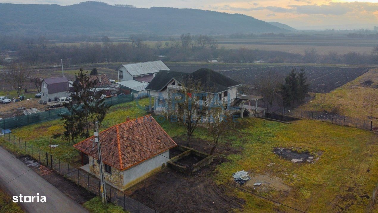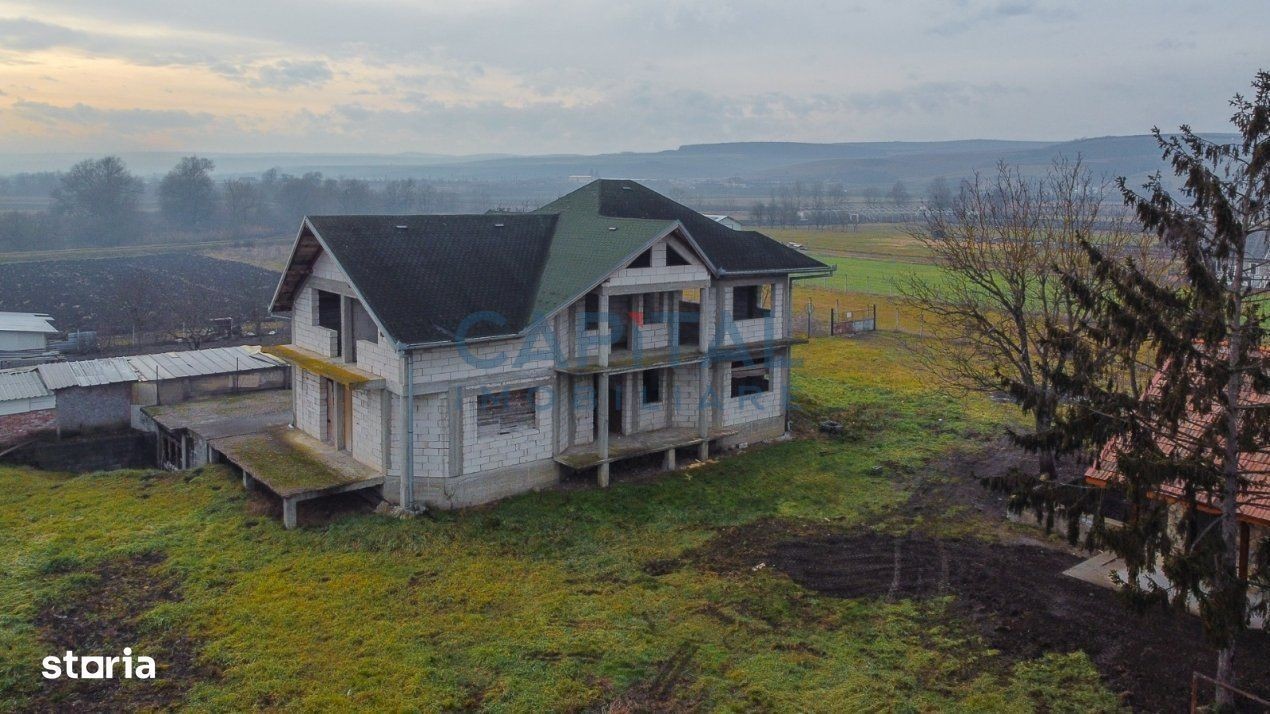 Capital imobiliare va propune spre vanzare o proprietate formata din doua case si terenul aferent de 2000 mp, iar frontul stradal este de 25 mp, situata in zona centrala a localitatii Livada, com. Iclod, jud. Cluj. Pozitionata pe o strada paralela cu artera principala de circulatie aceasta proprietate are avantajul de a fi ferita de zgomotul si praful datorat traficului rutier dar in acelasi timp ea este foarte aproape de magazine, farmacii, mijloace de transport in comun, scoli, gradinite, etc. Prima casa are o suprafata utila de 40 mp, are regimul de inaltime P si este astfel compartimentata: hol de acces, bucataria, dormitor, baie si terasa acoperita. Este finisata si mobilata, dispune de tamplarie PVC cu termopan, este izolata exterior si este acoperita cu tigla. Dispune de apa, canalizare, soba de teracota pe lemne. Cea de a doua casa este o construita in 2008, cu regimul de inaltime D+P+M si beneficiaza de un proiect arhitectural deosebit, compartimentata in 2 apartamente cu intrari separate. La demisol exita o pivnita, o camera tehnica si un alt spatiu de depozitare. La parter exista un living generos si luminos, o bucatarie, 3 dormitoare, 2 bai si 1 terasa de 130 mp. La mansarda exista 1 living, 1 bucatarie, 3 dormitoare, 1 baie, 2 balcoane, unul cu suprafata de 9 m, iar celalalt de 12 m si scara exterioara cu acces din curte. Fiecare apartament, are intrare separata, iar la Demisol, regasim 2 garaje, 2 camere tehnice si 2 beciuri. Constructia este momentan la rosu (BCA), este acoperita cu sindrila bituminoasa. Curtea este perfect plana si este insamantata cu iarba, brazi si urmeaza sa se planteze arbusti ornamentali. Gradina este si ea plana, unde se pot cultiva legume. Proprietatea este ingradita cu garduri din plasa si stalpi din teava. Strada pe care este situata aceasta proprietate este din pamant. Daca sunteti in cautarea unei proprietati frumoase, ingrijite si care sa va ofere oportunitatea de a continua constructia casei noi si de a o personaliza prin finisaje si amenajare, foarte bine pozitionata in Livada, aceasta poate fi optiunea potrivita pentru dvs. Contactati-ne cu incredere pentru mai multe detalii si pentru organizarea unei eventuale vizionari!