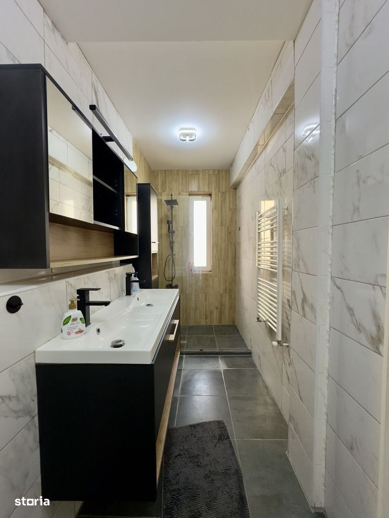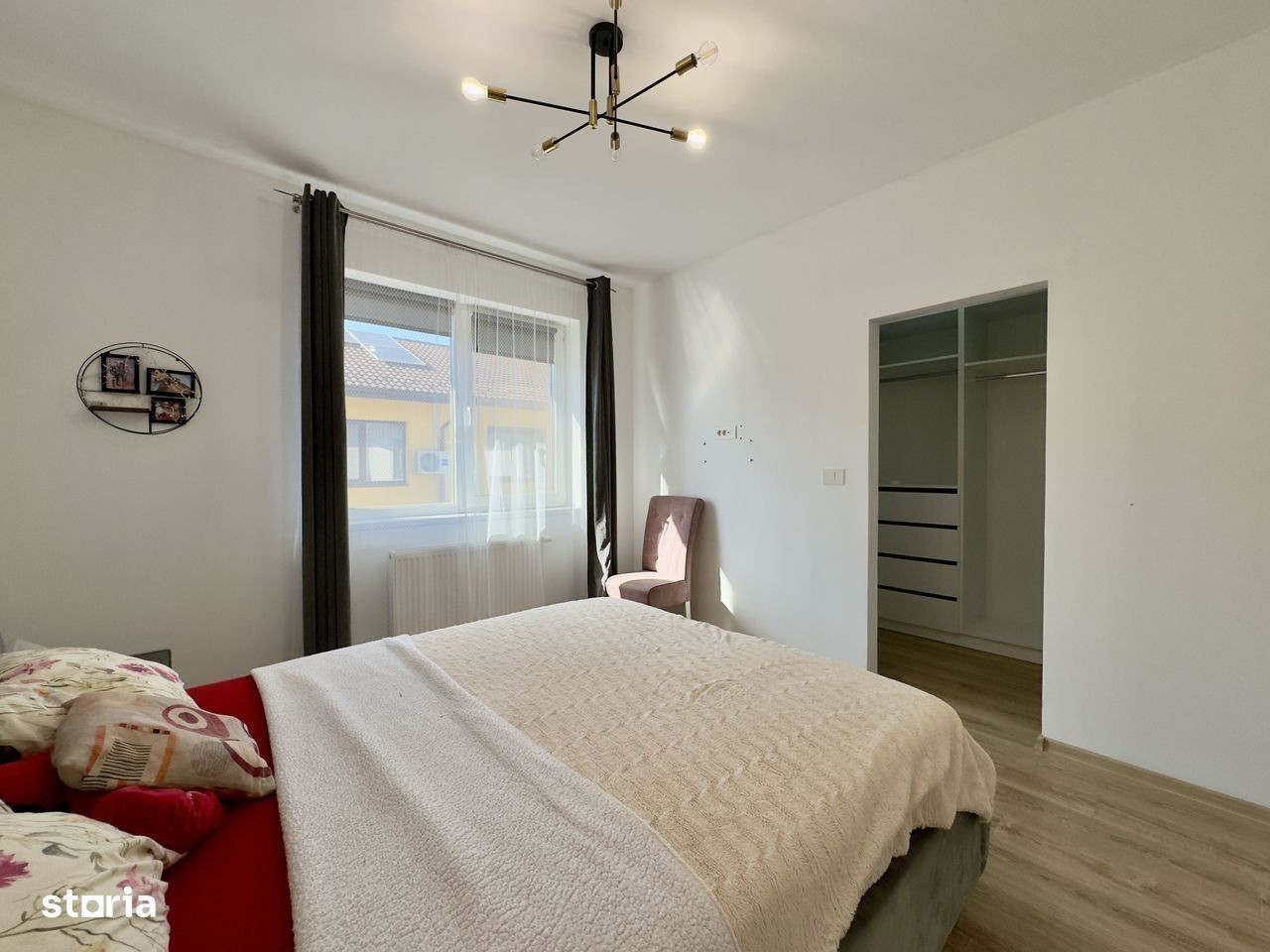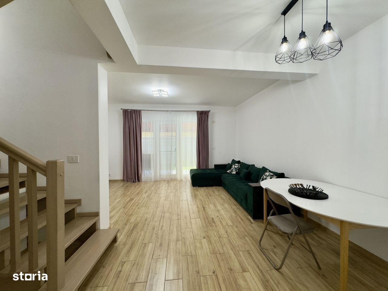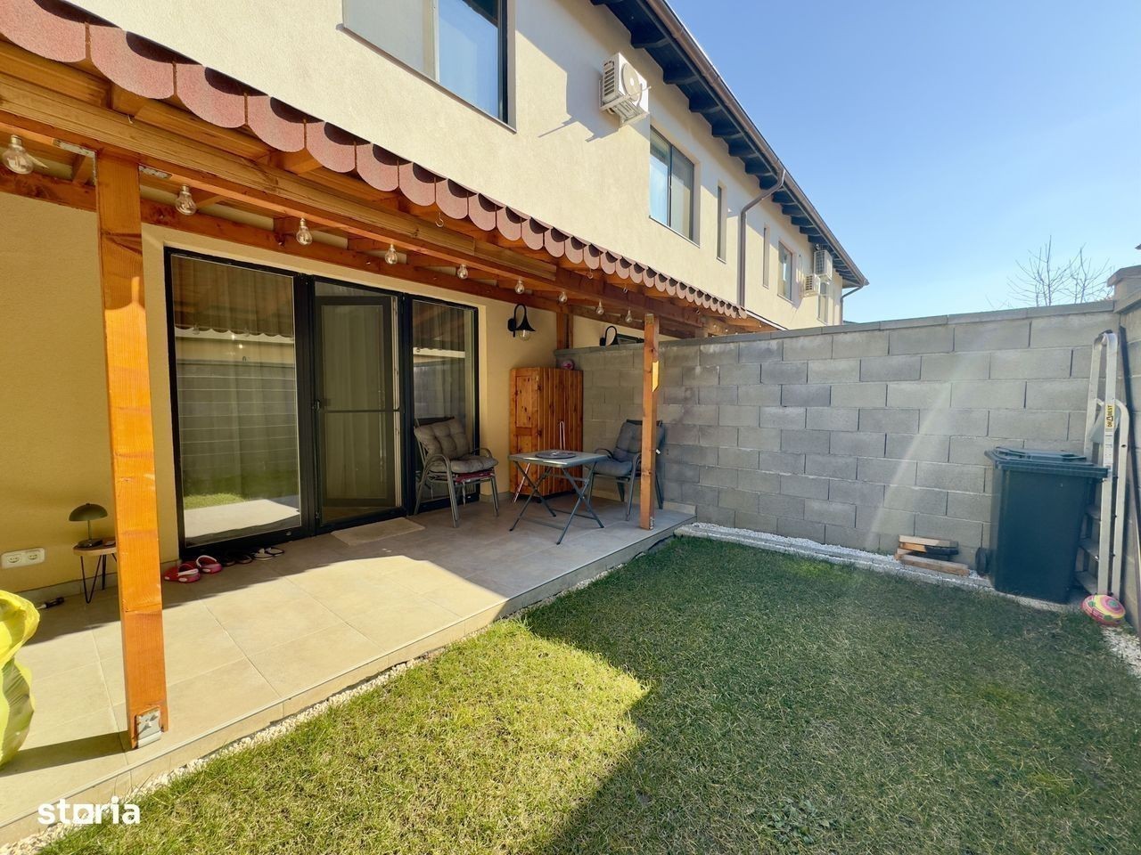 Va propunem spre vanzare casa insiruita, cu regim de inaltime P+1E, situata in Giroc, zona Planetelor, cu 3 camere, avand suprafata utila de 82mp, teren de 100 mp. Imobilul dispune de urmatoarele utilitati: curent electric, apa, gaz, canalizare, catv, fibra optica. Compartimentare: Parter: - hol, - baie, - bucatarie, - living cu zona de dinning, cu iesire pe terasa acoperita de 14 mp si in curte Etaj: - 2 dormitoare (1 dormitor cu dressing ) - baie - hol; Pod depozitare, acoperisul este izolat. Se vinde mobilata si utilata. Confortul termic este asigurat de centrala proprie cu incalzire in pardoseala la parter si la etaj prin calorifere. Detine un loc de parcare privat. Pret: 145 000 euro + comision Detalii la nr de tel: