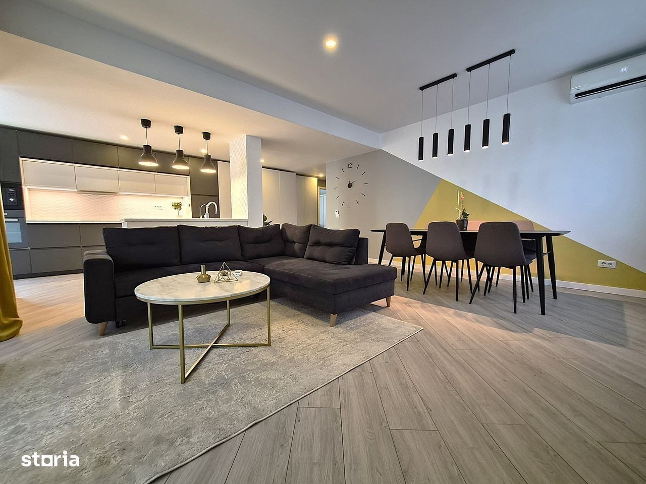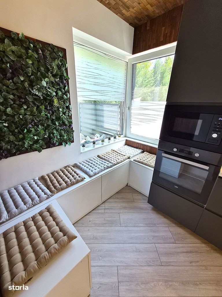 Apartamentul este situat in complex ASTRA RESIDENCE Str Constelatiei 1 bis. Loc de parcare inclus, gradina are suprafata de 70 mp, terasa 7 mp. Suprafata utila 90,2 mp, totala 167 mp. Posibilitate de cumparare inca 1 loc de parcare la pretul de 12000 euro. Complet mobilat si utiliat (ready to move). Finisari de exceptie. Dotari de baza - centrală de bloc - încălzire în pardoseală cu grup de pompare, distribuitor și termostat individual pe fiecare cameră - tâmplărie din aluminiu Cortizo, profil High Isolation, geam triplex - termosistem vată minerală bazaltică, fațadă ventilată, sticlă securizată fumurie - ușă metalică antiefracție la intrarea în apartament - lift - zidărie realizată din cărămidă - Porotherm - ceramică Marazzi și Porcelanosa - baterii Ramon Soler negru mat (consum redus de apa) - parchet 12mm - usi grecia cu feronerie neagra mat - balcon/terasa placate cu pardoseli ceramice, iluminare plafon cu banda led si balustradă exterioară din sticlă securizată - casa scării echipată complet: pardoseli placate cu granit, balustrade din sticlă securizată, iluminat pe senzori - videointerfon. Dotari suplimentare - aer conditionat VIVAX - control prin aplicatie wi fi - mobila facuta pe comanda, inclusiv in bai - masina de spalat vase incorporata gorenje - masina de spalat rufe - cuptor si plita electrica - frigider Beko incorporat. La o distanță de numai 3-5 minute cu mașina, veți descoperi Parcul Herastrau, Promenada Mall, stația de metrou Aurel Vlaicu, școli de top, centrul de afaceri Pipera, o gamă diversificată de restaurante, bănci, farmacii și magazine. În plus, Complexul ASTRA Residence se află la o aruncătură de băț de Pipera Plaza și de două magazine Lidl. Vis a vis este un Kaufland cu o galerie comericiala si sala de fitness 18 Gym. Există, de asemenea, o stație de autobuz convenabil amplasată în imediata apropiere a complexului.