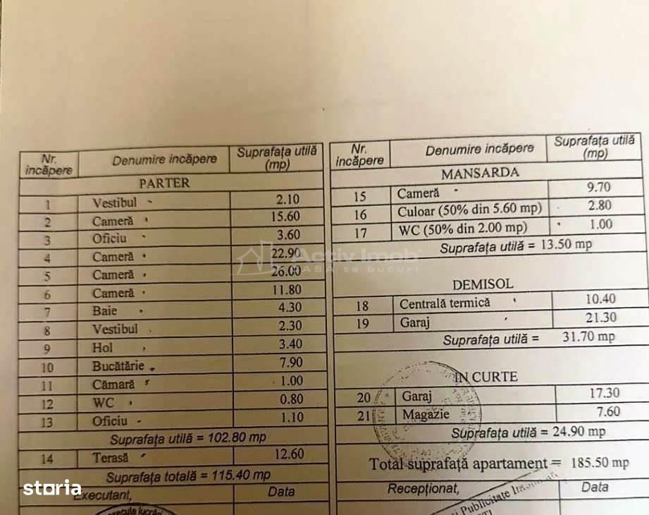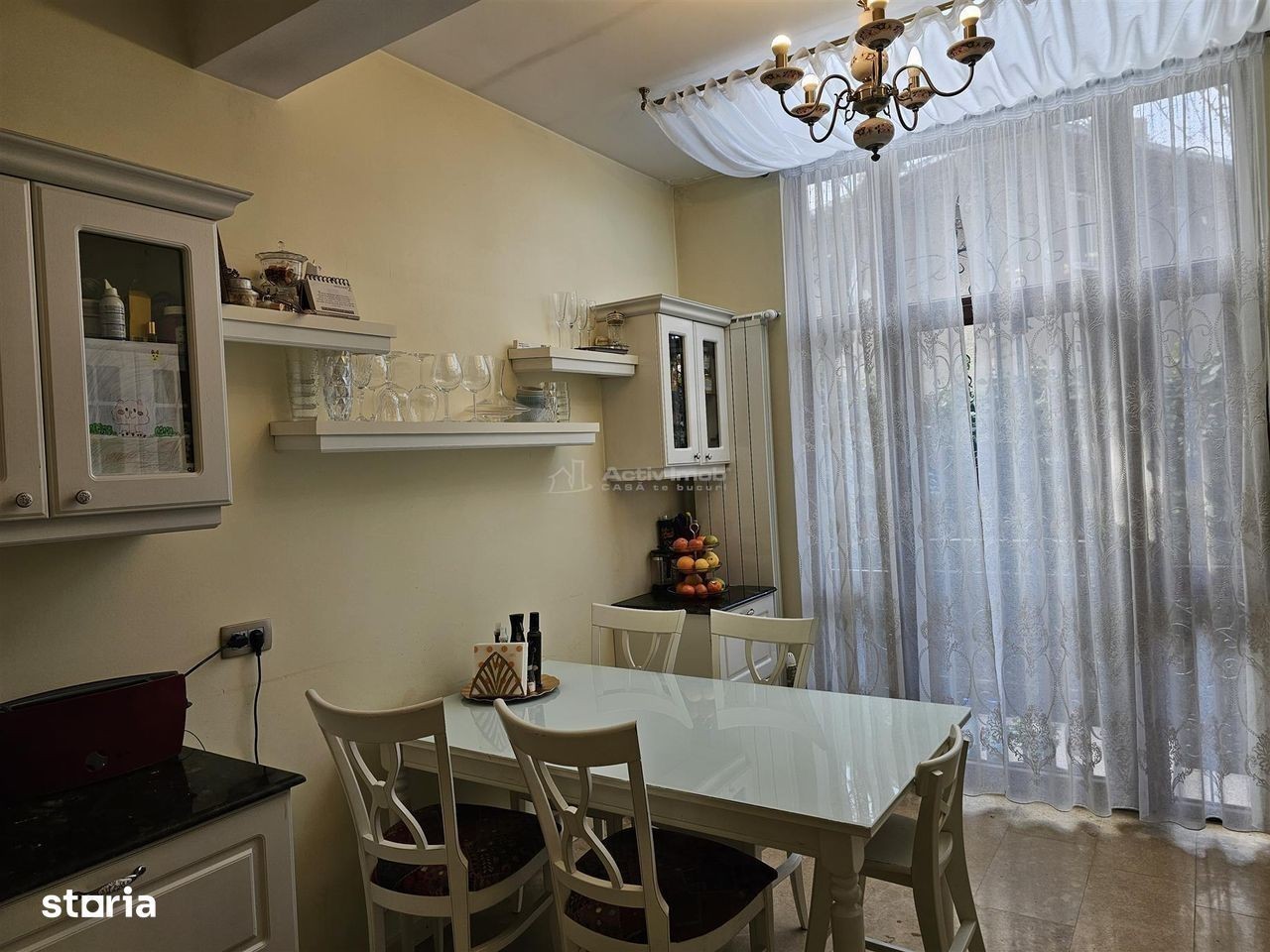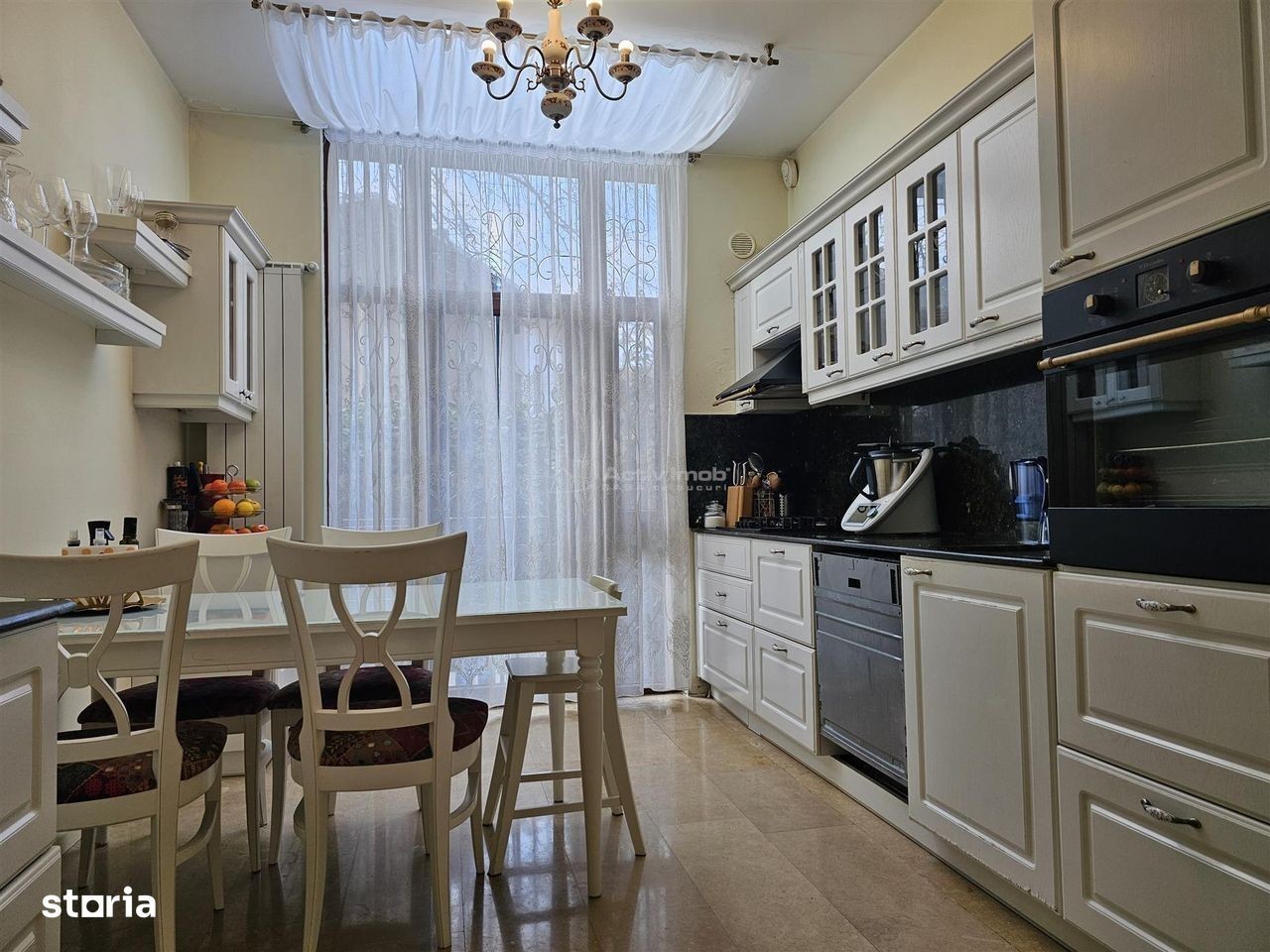 BENEFICII PENTRU CLIENTII ACESTEI OFERTE: 1. Beneficii oferite de zona: - Floreasca, zona de case, vile si cladiri cu regim mic de inaltime, aproape de Parcul Cinema Floreasca, Parcul Floreasca, Lacul Floreasca, supermarket-uri (Kaufland, LIDL, magazine stradale), restaurante, cluburi de noapte si recreative - Acces facil la: Promenada Mall - 6 min Parcul Herastrau- 10 min Complex Baneasa (Ikea, mall)- 15-18 min Aeroport Otopeni- 20 min 2. Beneficii tehnice ale ofertei: - Apartament in vila reconsolidata si renovata la demisol si parter cu materiale de cea mai buna calitate si cu o atentie deosebita asupra detaliilor (lucrari facute doar cu firme autorizate). Se pot pune la dispozitie facturi, autorizatii, proiect, filmari, poze etc, de la tot ce a presupus asta. - vila pare alipita de cea de alaturi, insa intre cele doua exista o distanta de cca un metru, mascata de un perete fals la fatada. - obiectul vanzarii: parterul, garajul subteran, camera de la mansarda, jumatate din curte, terasa, boxa pe doua nivele, doua magazii cu intrari idividuale situate intr-o singura cladire, plus ce se identifica in poze, proprietatea vanzandu- se mobilata si utilata. Spatiul este dispus astfel: - suprafata de 116 mp, desfasurata pe tot parterul vilei, dispusa in 4 camere (3 dormitoare si living), bucatarie, hol, dressing, doua bai- ambele cu geam. - suprafata de 14 mp la mansarda, dispusa in 1 camera, hol, baie. - suprafata de 32 mp la demisol, dispusa intr-un garaj (refacut, cu instalatiile schimbate, rafturi pe laterale, sapa hidroizolant pe jos, usi cu telecomanda) - separat o camera de depozitare pe doua nivele, aici se afla si centrala termica - suprafata de 25 mp, magazia din curte (sunt doua camere separate, cu uși individuale, în aceeași cladire) - alarma, supraveghere video 24 24 h - portile si usile de la garaj sunt actionate din telecomanda - trei locuri de parcare (unul in fata portii, unul in garaj si unul in curte) - suprafata curtii impreuna cu casa este de 480 mp - amprenta casei este in jur de 150 mp - in curte sunt plante ornamentale, gazon, pomi fructiferi, instalatie de stropit, lampi ornamentale - terasa betonata la nivelul solului - magazie spatioasa (are apa trasa, chiuveta etc) - instalatii electrice si sanitare noi, de cea mai buna calitate - trei intrari-una din bucatarie, astfel avem acces rapid la terasa, curte. - patru aparate de aer conditionat Panasonic legate la o sigura unitate profesionala externa cu inverter - centrala Buderus noua - parchet de nuc, lemn masiv - usi interioate de lemn de tei, usi dulapuri la fel - feronerie de cea mai buna calitate - in bucatarie, hol si bai incalzirea este in pardoseala, iar in restul spatiului sunt calorifere 3. Situatia juridica: - liber de sarcini - actele necesare vanzarii sunt disponibile Pentru aceasta oferta nu se percepe comision de la cumparator.