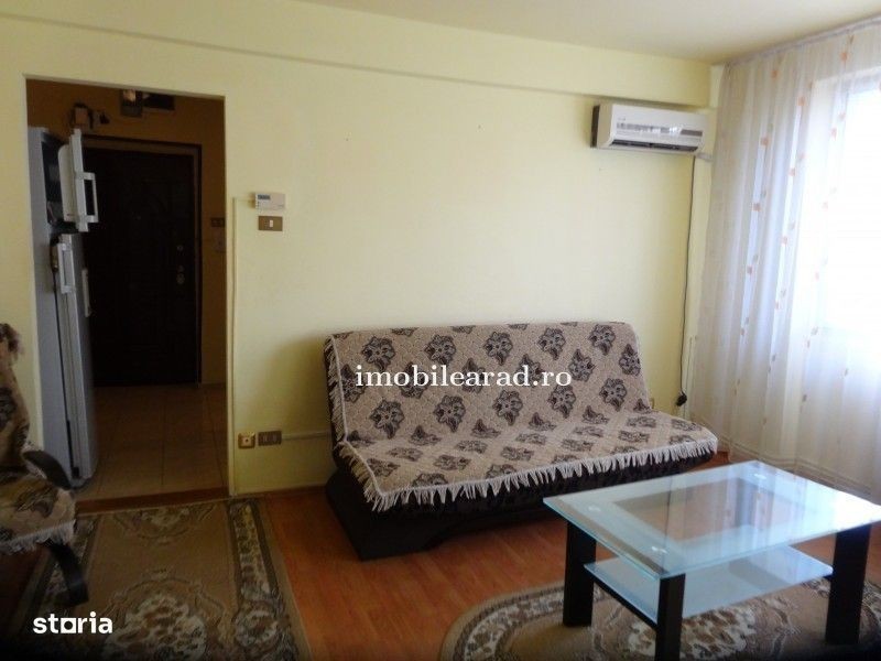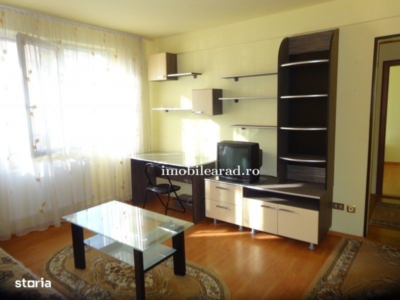 Imobile Arad va propune spre inchiriere apartament 2 camere zona Bancilor -Podgoria spre gara, apartamentul se afla la etajul 1 4, compus din dormitor matrimonial, living spatios, bucatarie, hol mare la intrare, baie cu cada si geam. Dispune de toate utilitatile, incalzire cu centrala proprie pe gaz, aer conditionat, internet, aparatura electrocasnica in stare impecabila. Apartamentul este foarte curat, zona foarte buna cu vecini linistiti, aproape de statia de tramvai, banci, supermarket-uri. Pret 330 Euro luna+ garantie. Telefon