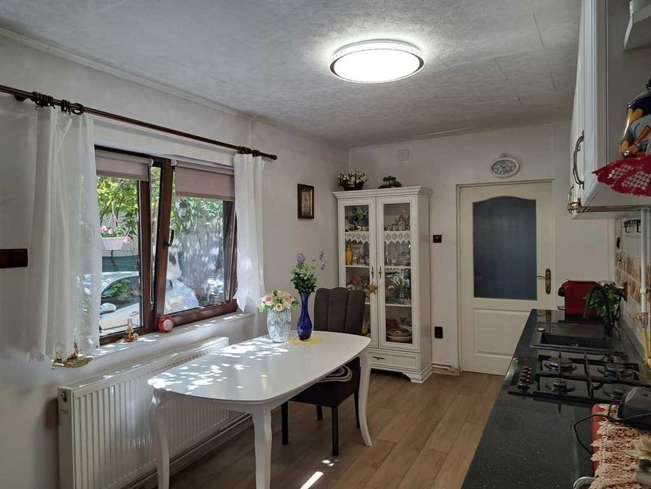 Vand IMOBIL situat in Loc. Petelea, jud. Mures, la 5,5 km de Mun. Reghin si 30,3 km Mun. Tg. Mures. 1. - CASA este o constructie S+P, constructie la sol 144 mp, constructie desfasurata 154 mp, din caramida, fundatie beton, acoperis tigla, structurata astfel : Subsol : - pivnita 10 mp Parter: - 3 camere, 1 bucatarie-living, 1 bucatarie, camara, 2 bai, 2 holuri, terasa, este organizat in doua corpuri cu acces separat astfel: Corp A - dormitor, camera zi, living-bucatarie, camara spatioasa, baie cu geam Corp B - camera, bucatarie, baie Pe curte exista o terasa acoperita de 33 mp si o sura cu magazine de 68 mp. Corpul A a fost renovat complet interior in ultimii 3 ani, adica instalatie electrica, instalatie apa si canalizare, refacuta complet baia, parchet, zugravita, semineu pe peleti. Corp B - bucatarie renovata, geamuri si usi schimbate. Incalzirea se face cu centrala termica pe gaz (de 1 an) si semineu pe peleti Casa este in totalitate izolata, geamuri termopan, usi noi. 2. TEREN - 2065 mp, imprejmuire Imobilul este intr-o zona linistita, la strada principala, asfalt, apa curenta, canalizare, curent electric, gaz, internet. Se vinde mobilata si partial utilata, cu mobilier si electrocasnice de calitate. Daca nu ai nevoie de asa mult teren, acesta poate fi parcelat si vandut o parte, avand in vedere ca la gradina exista acces dintr-o alta strada. Daca iti doresti liniste si aer curat, o casa in care sa nu te apuci de renovat, aceasta poate fi alegerea potrivita. Pret 117.000 EUR, usor negociabil Tel. 07******10