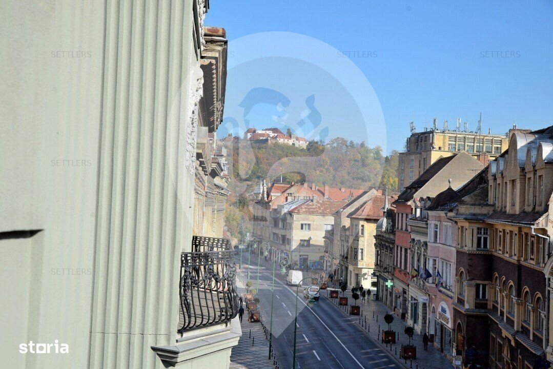Palatul Spiltz (Spitz Palota) de pe strada Mureşenilor nr. 5 a fost ridicat în anul 1912 de către arhitectul Albert Schuler pentru Albert Spitz. Proprietatea închiriată este parte din Palatul Spiltz, în suprafață de 440 mp, respectiv partea de pe Strada Muresenilor. Se inchiriază etajul 1 și etajul 2, open space, in suprafață totală de 440 mp utili la care se adaugă podul cu o suprafață de 330 mp, rezultând un spatiu util total de 770 mp. Proprietatea necesită investiții la interior, la cerere se pot furniza detalii complete. Cu o arhitectură unică şi cu faţada care se face uşor remarctă este una din cele mai frumoase clădiri din Braşov. Din balcoane şi de pe terasa retrasă se vede Piaţa Sfatului, Biserica Neagră, Cetăţuia de pe Strajă, Tâmpa şi toată strada Mureşenilor, iar din curtea interioară se vede Turnul Negru. Clădirea mai are o ieşire în spate care dă în stradă După Ziduri unde sunt celebrele Catacombe. În anii "20 în această clădire a trăit familia Baciu loan şi Elisabeta, parinţii poetului Ştefan Baciu, unde a locuit şi poetul Ştefan Baciu după ce familia a părăsit locuinţa de pe str. Michael Weiss. Au mai locuit deasemenea Doctorul Valeriu Negrilă, maiorul Mihăilescu, tipograful Boerescu, soţii Wilhelm şi Emilie Schreiber (co-proprietari ai fabricii, Scherg"). În partea din spate a curţii acestei clădiri se află o locuinţă stilată, unde a locuit Valeriu Negrilă, unul dintre medicii ginecologi apreciaţi în oraş. Clădirea avea la stradă două pravălii:,Lischka", mode bărbăteşti şi Librăria Cooperativa Enea, Stinghe şi Tigoiu, iar în perioada interbelică la etaj a funcţionat o sala de balet. La parter a funcţionat Banca Comercială Ungară din Pesta. Pereţii de pe casa scării au fost acoperiţi cu ornamente Art Nouveau, maximul de popularitate al stilului fiind între anii 1890 - 1910. Un obiectiv major al Art Nouveau-ului a fost de a reduce diferenţele dintre artele plastice tradiţionale (în special pictură şi sculptură) şi cele aplicate. A fost cel mai des folosit în amenajări interioare, arte grafice, mobilă, sticlărie, textile, ceramică, bijuterii şi lucrări metalice. Etajul 2 are şi el o suprafaţă utilă de 220 metri pătraţi. Compartimentarea este predominant Open Space. Deasemenea lucrările au fost demarate şi la acest nivel. Avem la ferestrele principale 3 balcoane de unde se poate admira frumuseţea cărămizie a acoperişurilor centrului istoric. Geamurile, uşile, balustradele şi feroneria au fost conservate şi recondiţionate pentru a păstra caracterul unic al acestei proprietăţi. Clădirea este pusă în valoare de celelate proprietăţi bijuterie ale oraşului Braşov: La intersecţia Bulevardului Ferdinand (bd. Eroilor azi) cu Şirul Inului (str. Mureşenilor azi), pe locul vechii Porţi a Vămii (peste drum de Rectorat), se află primul palat Czell, construit în 1901 (e cunoscut că locul unde a fost "Groapa cu bere", la subsolul fostului restaurant "Ursu" - proprietar a fost Nicolae Cătănoiu, tatăl poetului Nicholas Catanoy, stabilit în Germania). Palatul are două etaje, turnuri şi basoreliefuri cu îngeri şi sori. I se spunea chiar "Palatul Soarelui". Azi, clădirea e destinată locuinţelor şi spaţiilor comerciale. Practic, fraţii Czell nu au ridicat aceste palate pentru a locui în ele, ci pentru a le închiria celor cu dare de mână, ca locuinţe sau ca spaţii de lucru sau comerciale. Al doilea palat Czell construit este astăzi sediul Băncii Naţionale Braşov. Al treilea palat Czell, ceva mai modest, se află pe str. Mureşenilor, a doua clădire după Biserica Romano-Catolică - e uşor de recunoscut după ornamentele dantelate. La nr. 7 se află clădirea care adăpostea hotelul Europa, nu cel mai luxos, dar apreciat de negustorii care veneau la târg pe Poarta Vămii - clădirea vă fi transformată în cinematograful Corso (numit după 1950, Popular). Tot înainte de naţionalizare, la nr. 8 era deschisă Casa de modă "Samuel" (pentru femei, în special), iar la nr. 9 era croitoria pentru domni a lui Aron Zsigmond. La capătul străzii Mureşenilor (spre Livada Poştei) se află un edificiu fastuos, construit între 1881-1884, în stil neorenascentis
